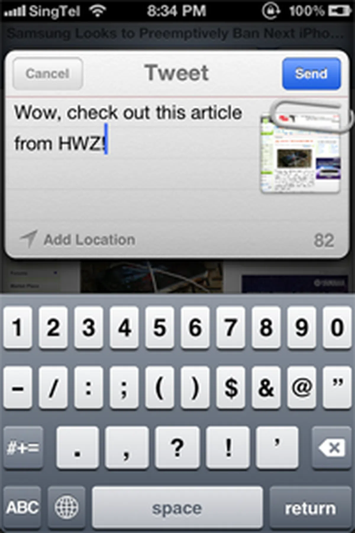Do note that you don't really need the Twitter app for the integration; all you need is to add your account within the Twitter setting. As far as we’ve tested, you can send outgoing tweets, but at the end of the day, you’ll still need the Twitter app to view incoming ones.