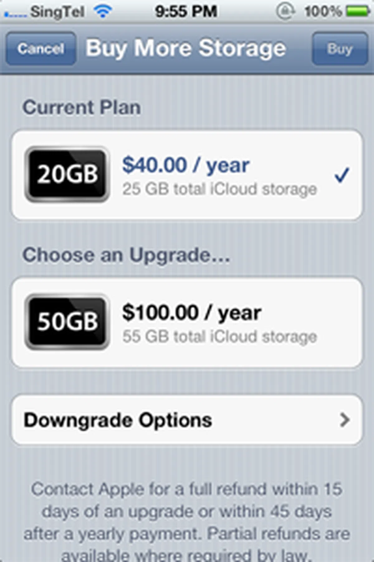 When you sign up for iCloud, 5GB of storage is given free. Choosing to upgrade to a higher storage capacity will set you back by S$20 per year for additional 10GB, S$40 per year for additional 20GB, and S$100 per year for additional 50GB (prices include tax). Honestly, we haven’t seen our storage capacity dwindling that much, so we feel that the average user can still do without the upgrade for now. And 5GB is definitely more than sufficient if all you need are contacts and calendars syncing.