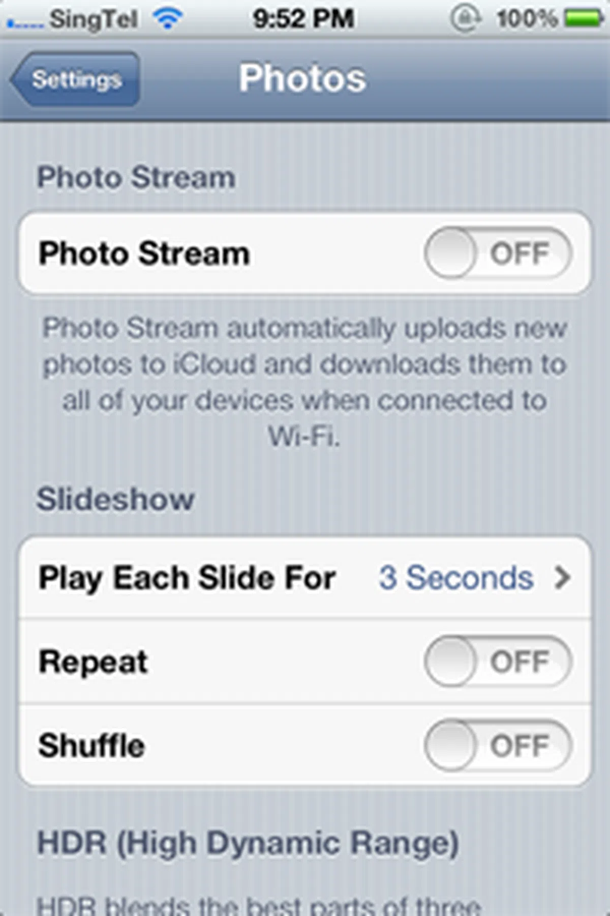 If you turn on iCloud backup, your data such as email, documents, account information, photos and various other settings will be backed up to iCloud when the phone is plugged in, locked and connected to Wi-Fi. More importantly, this 5GB of storage isn’t counted in for items such as apps, music and books that are some of the heavier consumers of your storage capacity. Then there's Photo Stream which automatically uploads your photos to iCloud and pushes them down to the rest of your iOS devices when they're on Wi-Fi. It's different from Camera Roll in the sense that Photo Stream gives you a rolling collection of your last 1000 photos (new photos are stored for 30 days); you can then save a photo to the Camera Roll or an album.