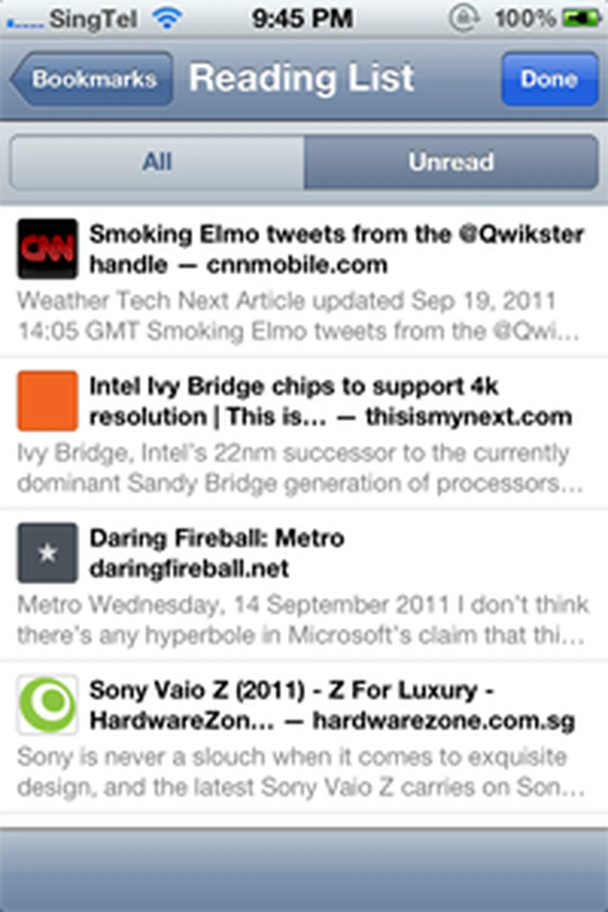 Also new is Reading List; this gives you the option to save the web page you’re visiting for viewing at a later time when you have the opportunity to read through it in detail.
