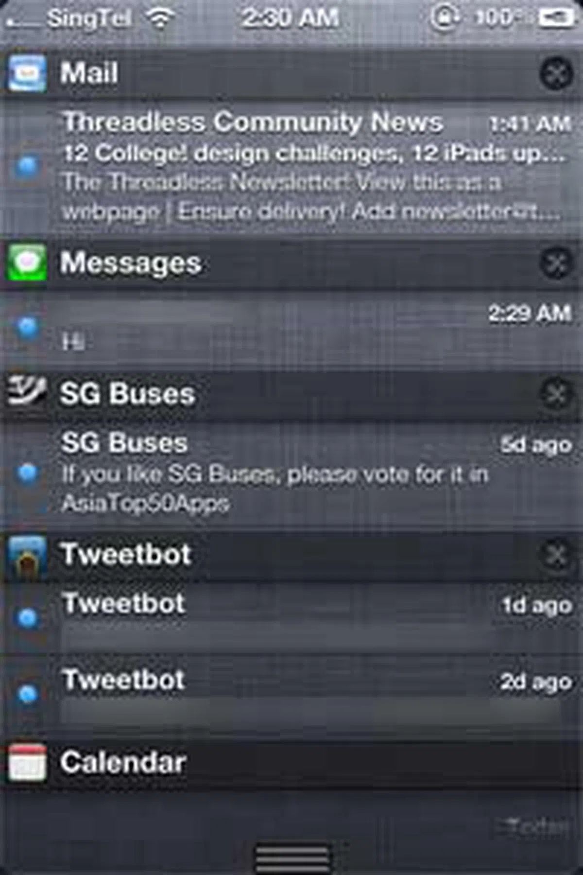 Gone are the days when you get interrupted by intrusive pop-ups on your iPhone. In its place, you have a new drop-down listing of the latest alerts from the top of the screen. Apple has created a couple of widgets too: Stock and Weather. Do note that there is a limit to the number of notifications listed. For iPhone users, that’ll be 10 recent or unread items per app, while the limit for the iPad is set at 20 due to its larger screen real estate.