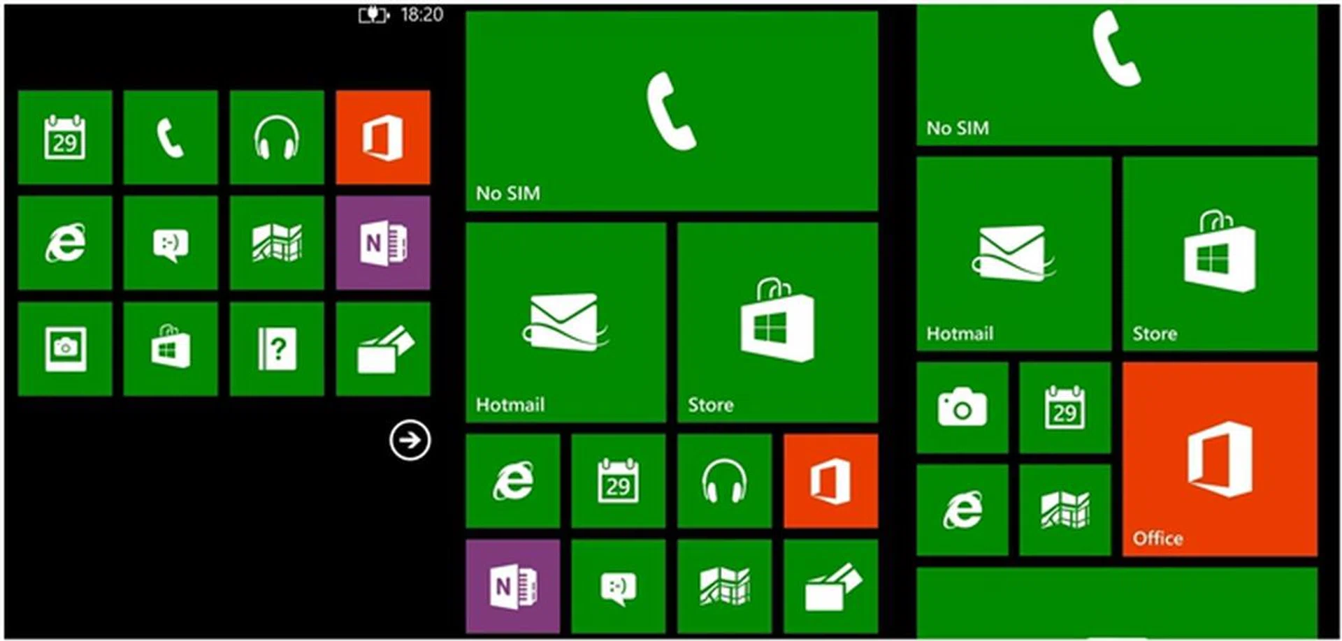 - Live tiles that can be resized in all three forms are Phone, People, Messaging, Gmail, Hotmail, Music + Videos, Games, Calendar, Me and Photos.