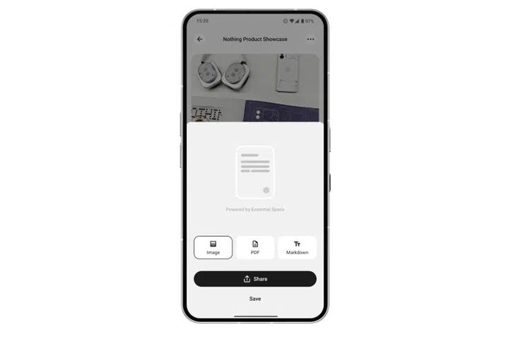 Also on the same vein of sharing your thoughts, all the captures you made to your Essential Space can be shared as one image, or PDF. If you have a voice recording in that collection, it’s transcribed automatically before sharing, too.