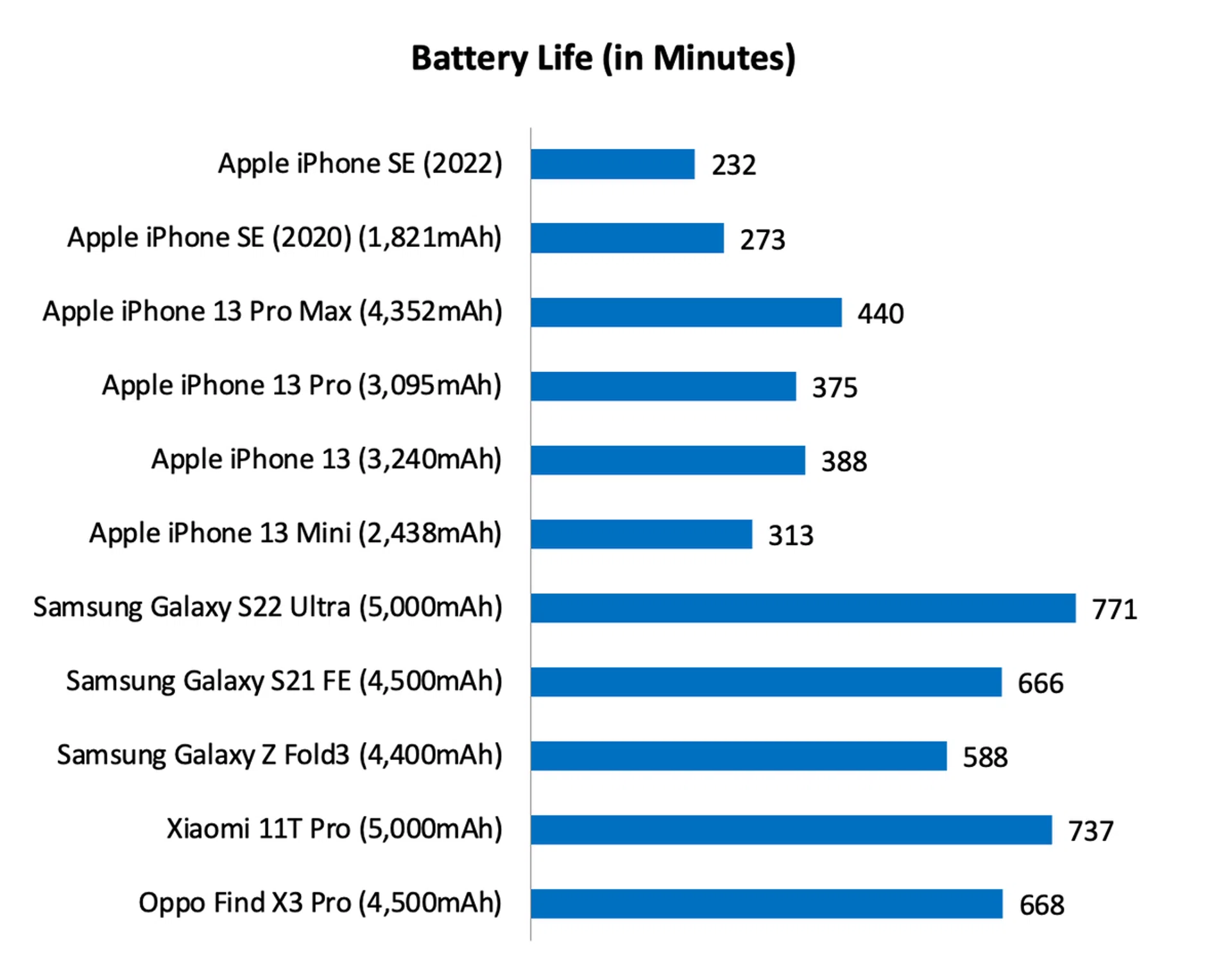 Apple claims up to 15 hours of video playback, which is two hours more than the last iPhone SE. However, in our battery test, we found that the new phone lasted 41 minutes less – that’s a drop of around 15%. Granted, our regime is markedly more intensive (100% brightness and 100% speaker volume), but that’s not an encouraging sign.