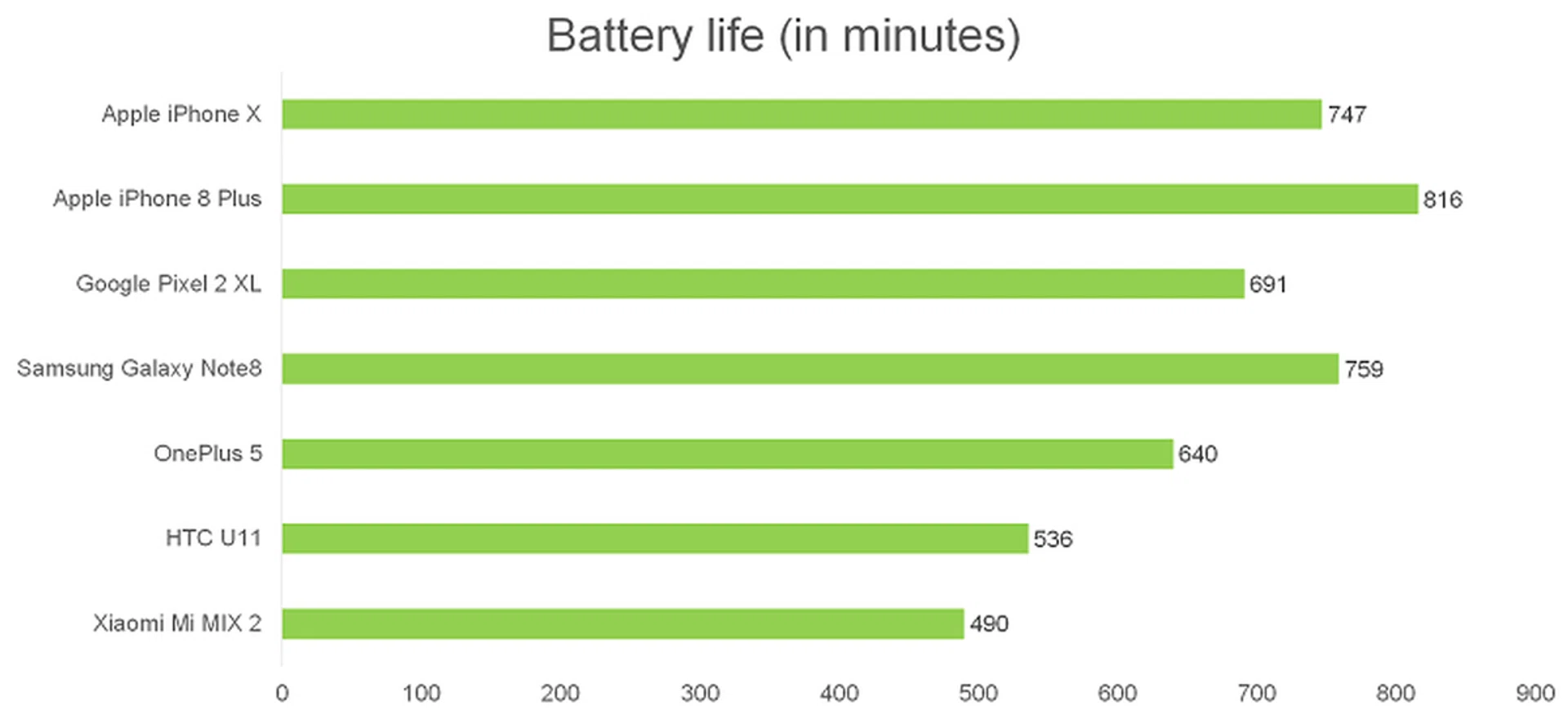 So given its larger battery and more power efficient display, why didn't the X last longer than the 8 Plus? Apple's batteries are actually relatively small compared to its Android competition, but even with a smaller battery, they've fared really well. This is a testament to how power efficient Apple's processors are and how well optimized the iPhones run. It's possible that the A11 and iOS are so well optimized that even the addition of an OLED screen can't squeeze extra battery life out of the iPhone X.