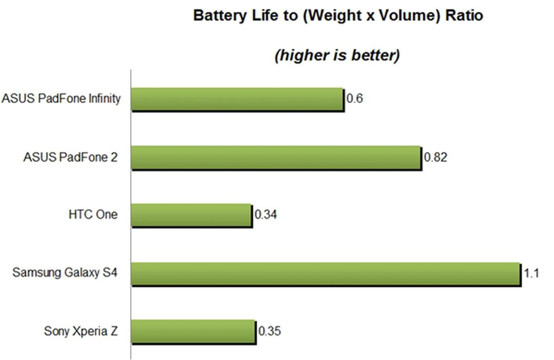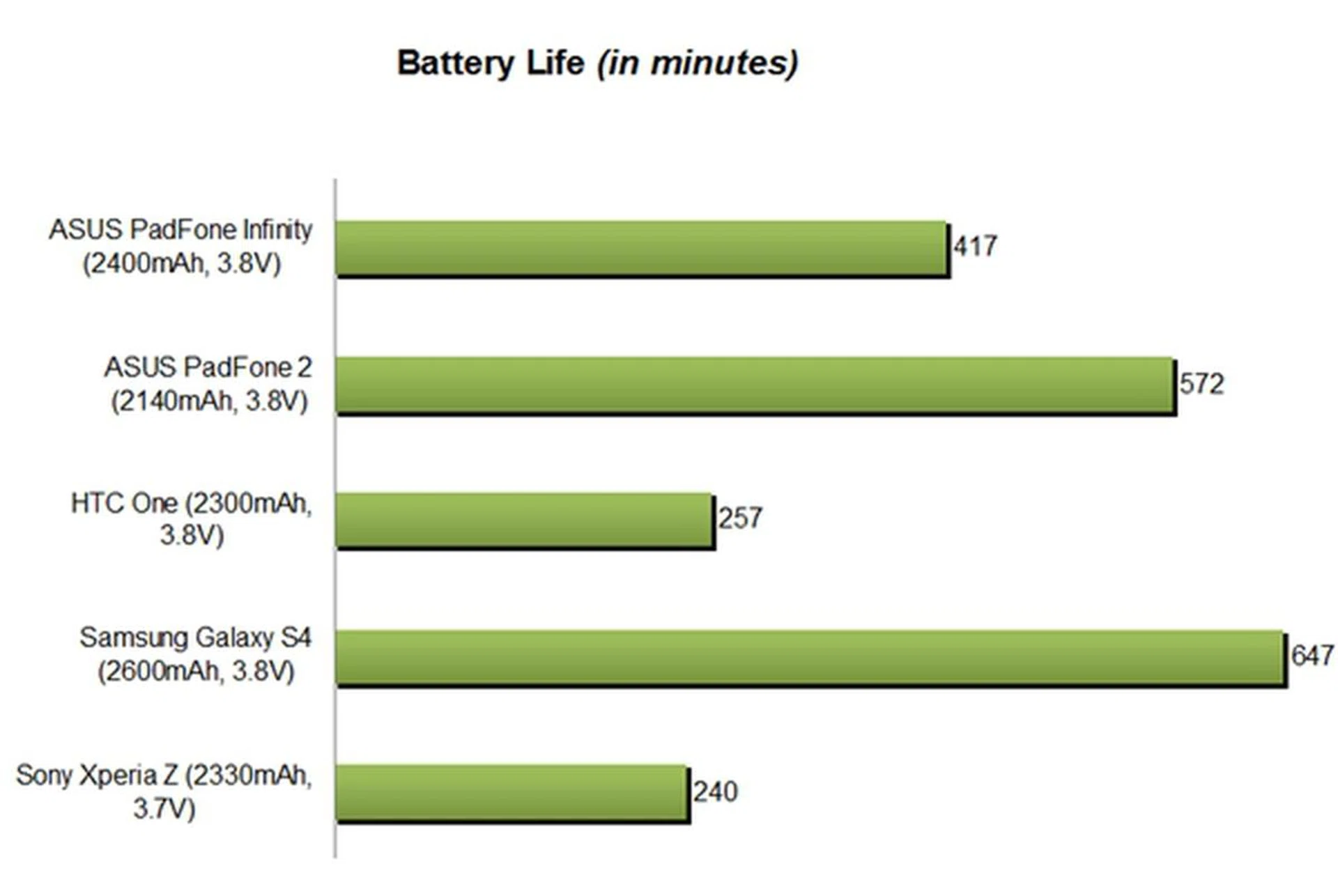 Device | ASUS PadFone Infinity | ASUS PadFone 2 | HTC One | Samsung Galaxy S4 | Sony Xperia Z |