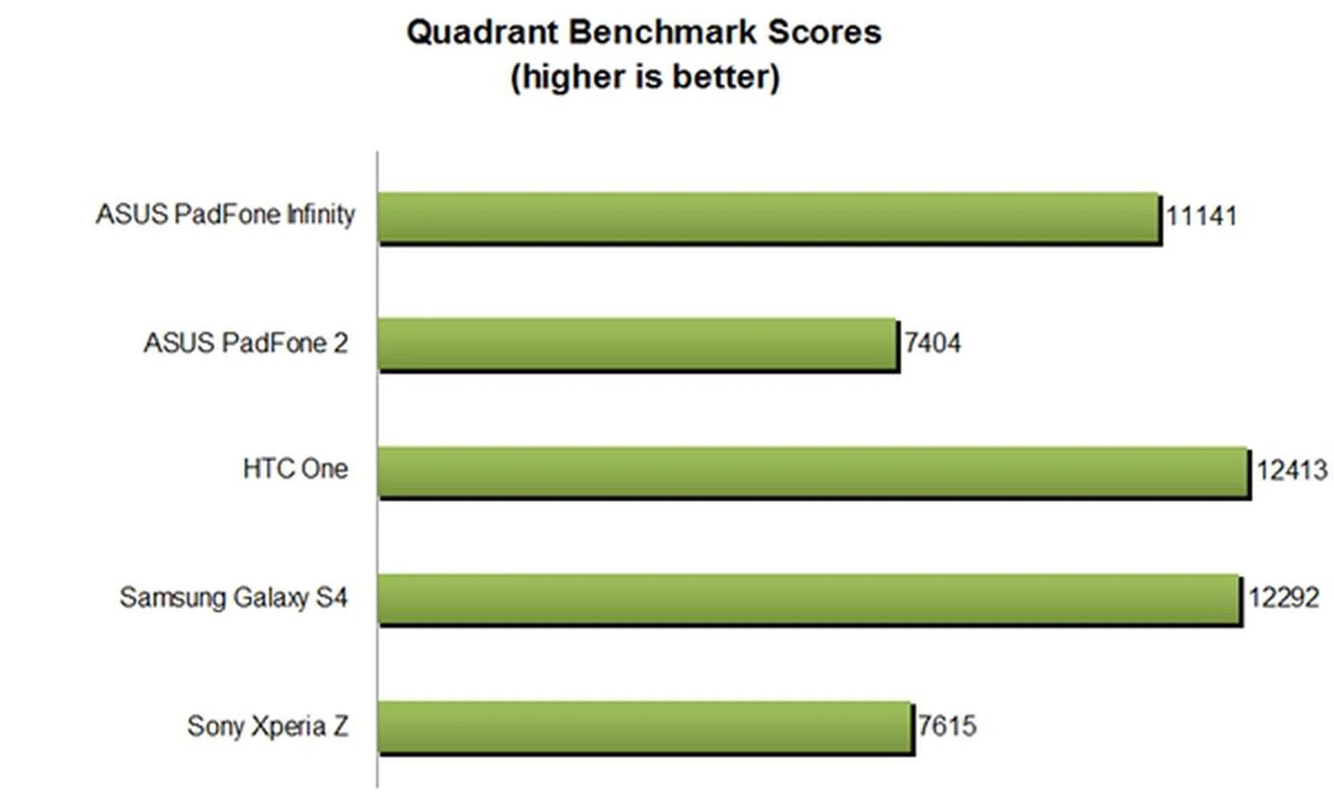 The PadFone Infinity is powered by the same processors found in the HTC One and Samsung Galaxy S4. On paper, their performance should not differ from each other. To assess how the PadFone Infinity fares against the competition, we ran the Quadrant benchmark test.
