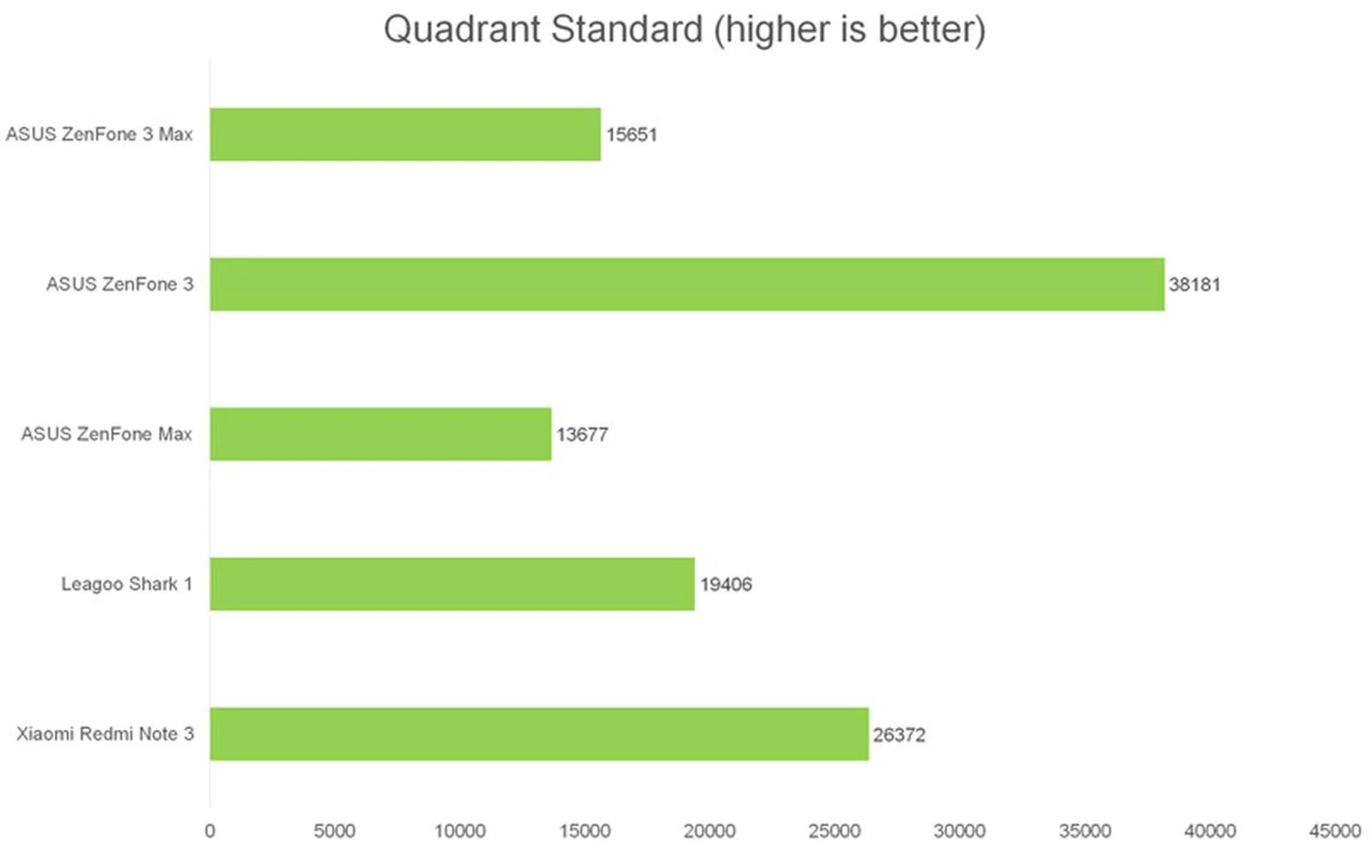 Quadrant evaluates a device's CPU, memory, I/O, and 3D graphics performance. The ZenFone 3 Max has an average performance on paper, with some disappointing results - the Redmi Note 3 actually beats the ZenFone 3 Max by a large margin despite sitting in the same price bracket.