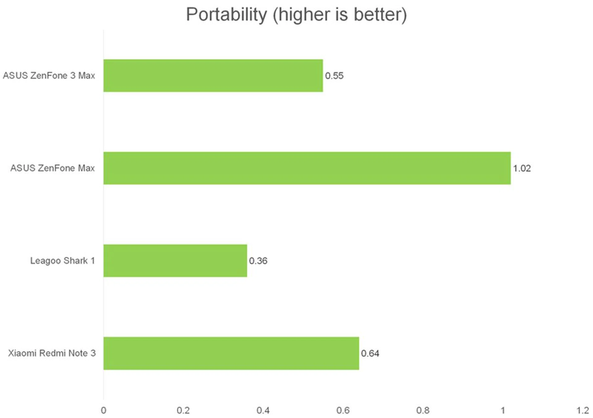As the power consumption figures above reveal, clearly, the ZenFone 3 Max is sipping way too power, and thus the overall poor battery performance. Combining these above factors, our Portability Index agrees with us that even the heavier and thicker ZenFone Max from last year is more worth your time than carrying around the new ZenFone 3 Max, despite the fact the newcomer is sleeker and lighter. For those who aren't too familiar with our Portability Index, it factors key attributes such as battery life uptime, physical dimensions and weight into consideration to bring about the below ratios:-