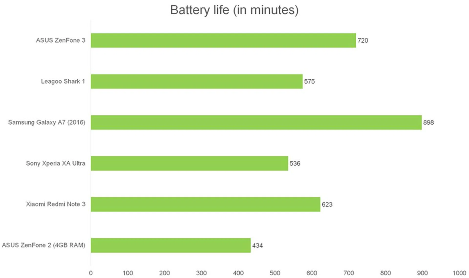 The ZenFone 3 has a 3,000mAh battery capacity, which is quite average for this class of phones. However, battery performance is anything but average. As seen in the results below, the new ASUS ZenFone 3 rectified its predecessor's short battery life, and it's only eclipsed by a Samsung device. That's an impressive showing considering that Samsung devices often benefit from their AMOLED screen and Exynos processors. Part of the reason could be attributed to the much more efficient new Snapdragon 625 processor used that Qualcomm claims is up to 35% more power efficient than its predecessor. Further to this, we should also point out that the ZenFone 3 uses a newer speaker system that is far louder than its competitors, but it also means it consumes more power than traditional phone speakers; despite this distinction, the battery performance turned out to be excellent.