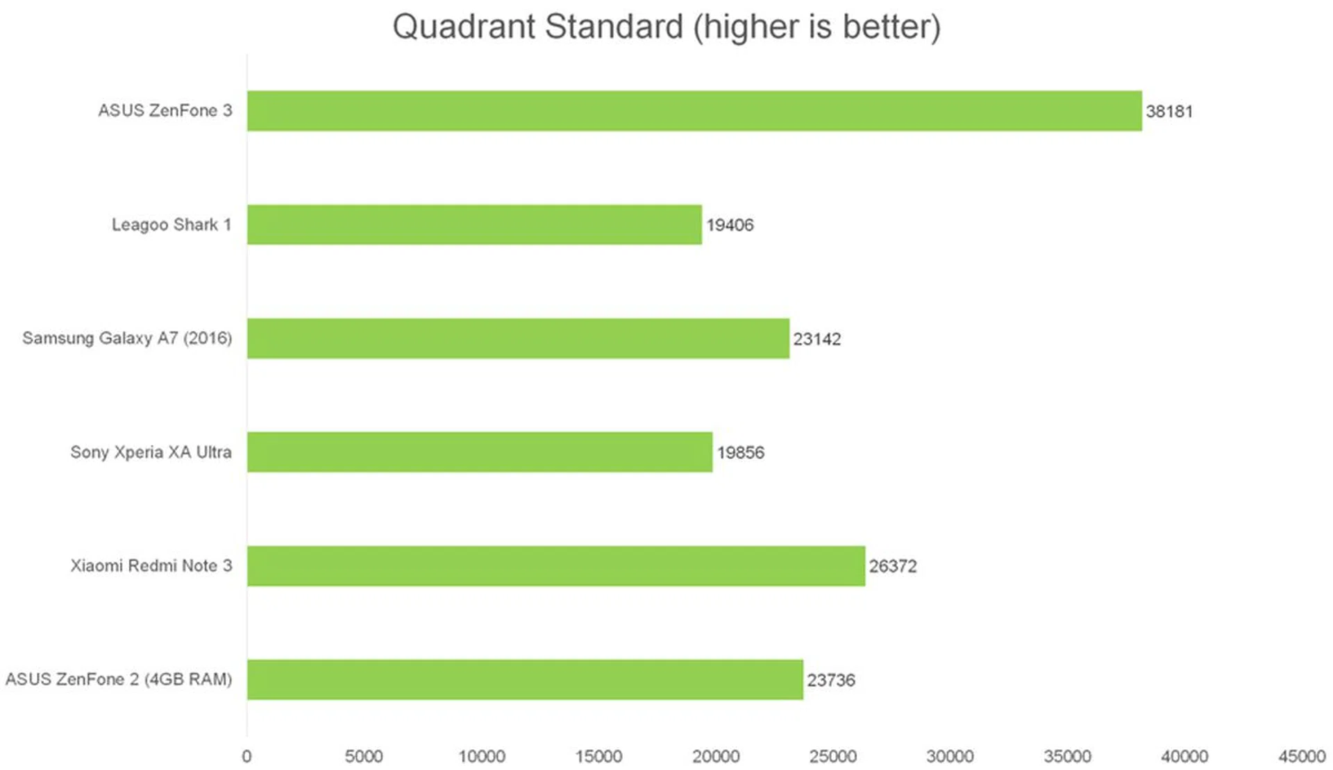 Quadrant benchmarks a device’s CPU, I/O, and GPU performance. ZenFone 3 leads the pack, hands down. In fact, the results are actually flagship device level performance.