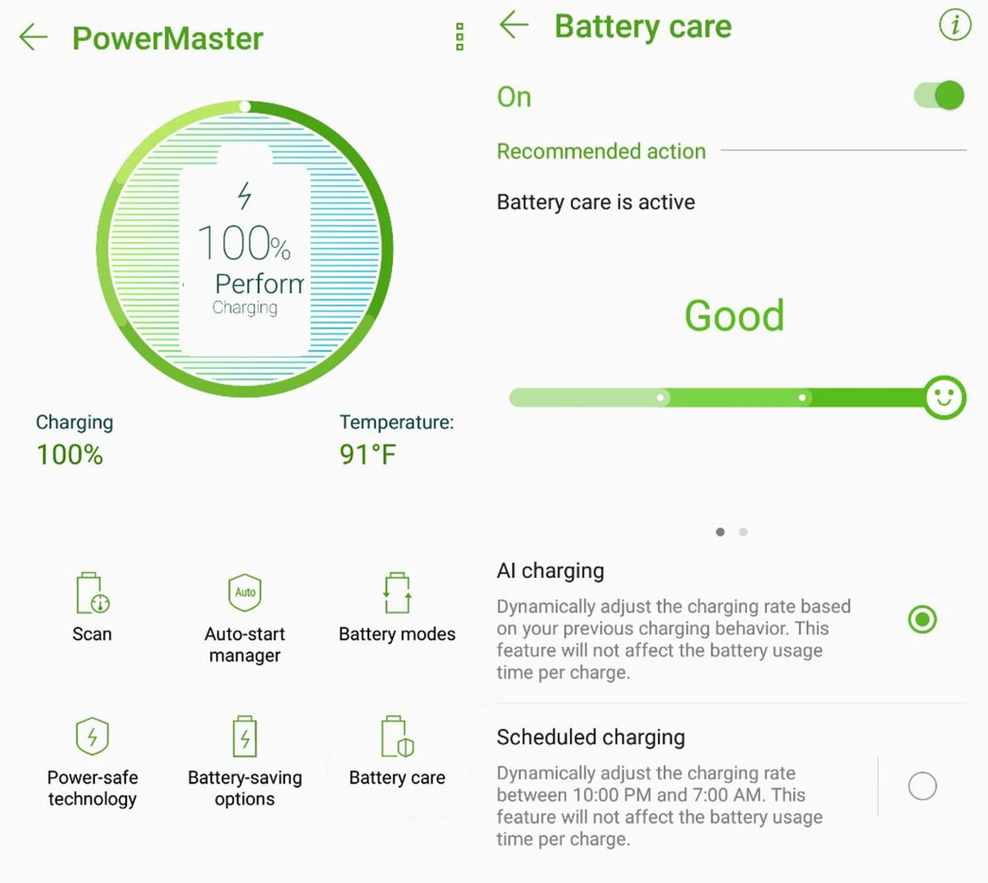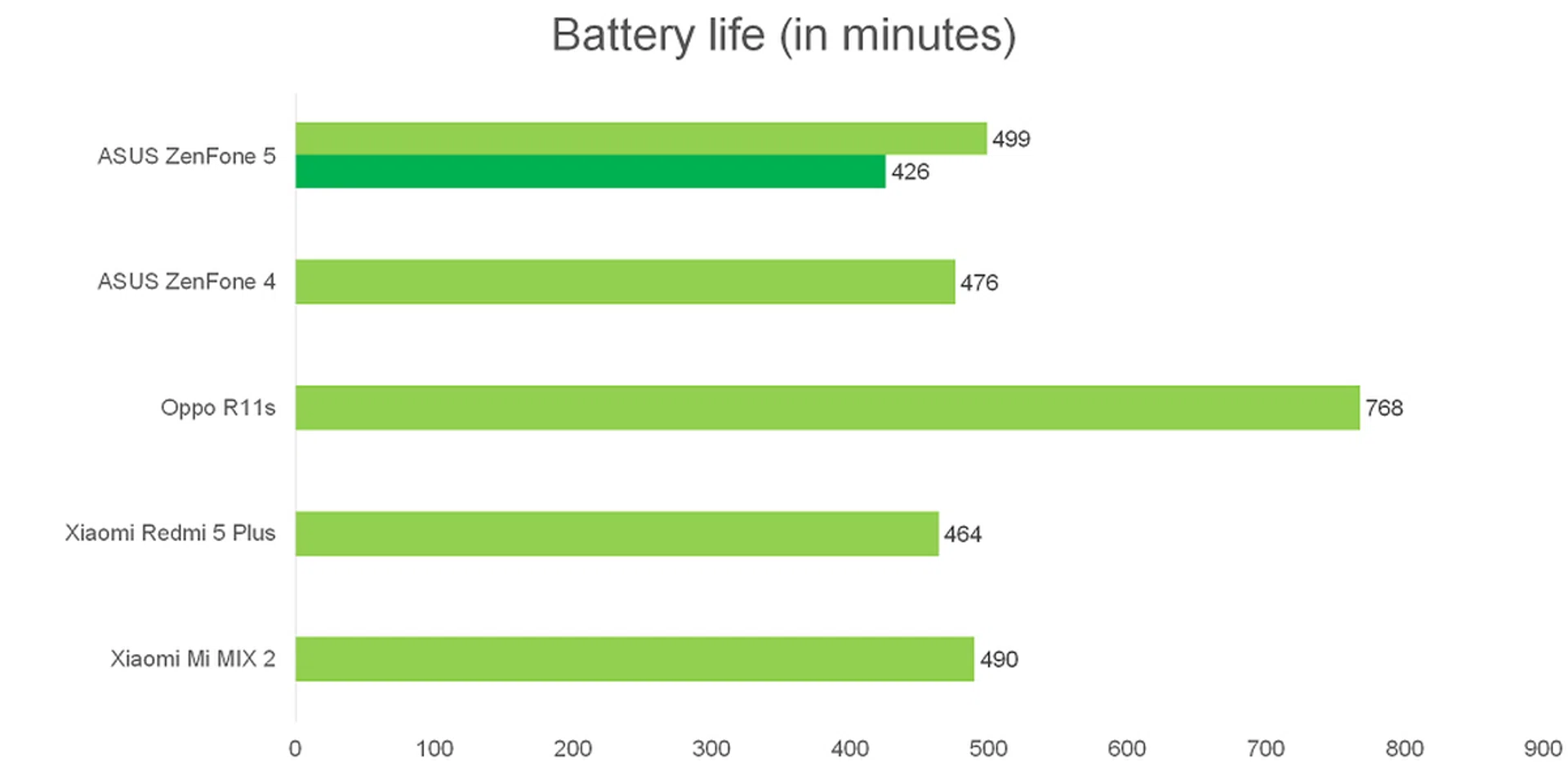The ZenFone 5 has a 3,300mAh battery, which is about the average capacity for a phone of this size. The phone ran for 8 hours and 19 minutes, which was slightly better than the ZenFone 4 and Redmi 5 Plus, but fell far short of the Oppo R11s with its power-efficient AMOLED display. Running this benchmark with AI Boost turned on also resulted in a significant decrease in battery life, with over an hour lost. My advice is to only turn on AI Boost for CPU-intensive tasks, and only if the app is struggling without AI Boost.