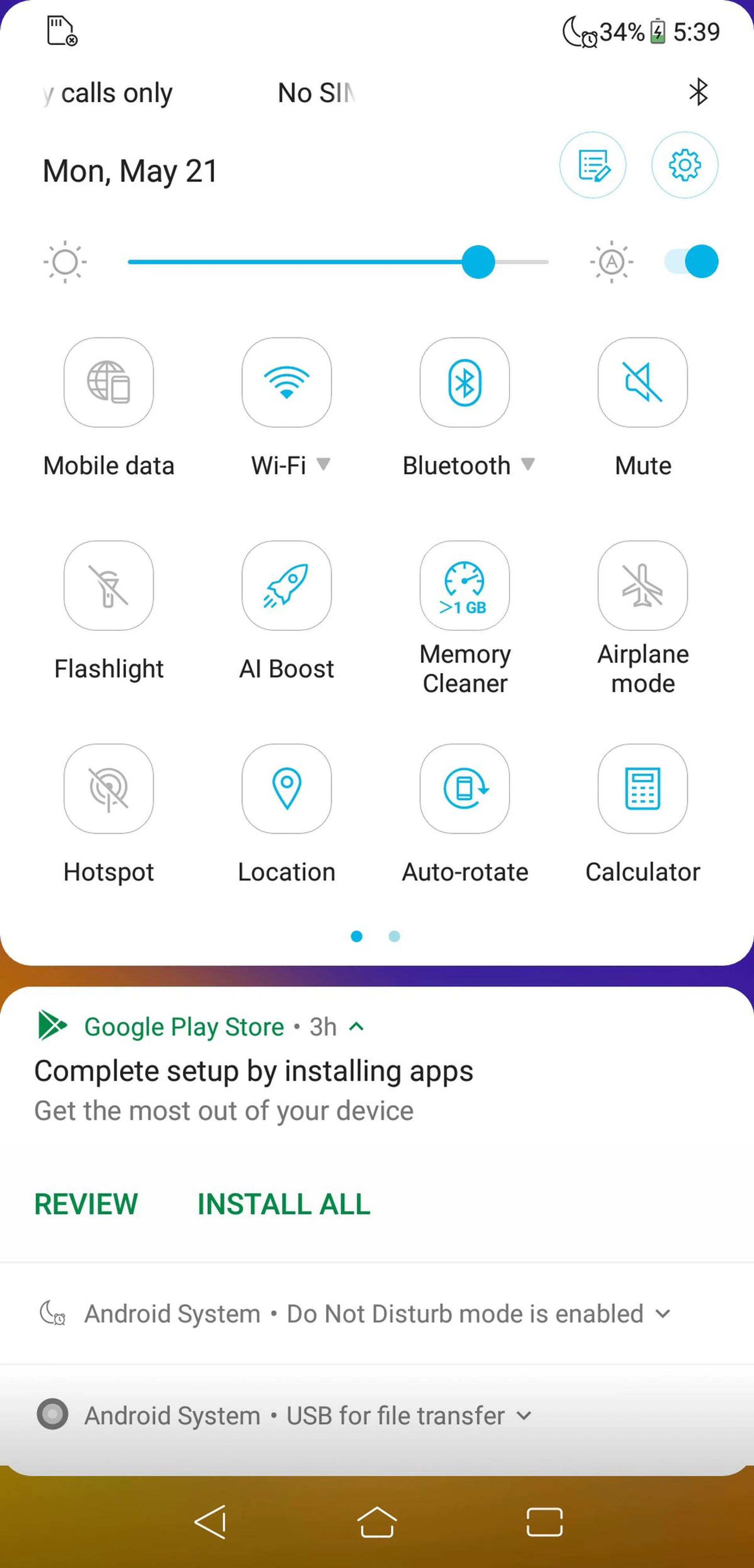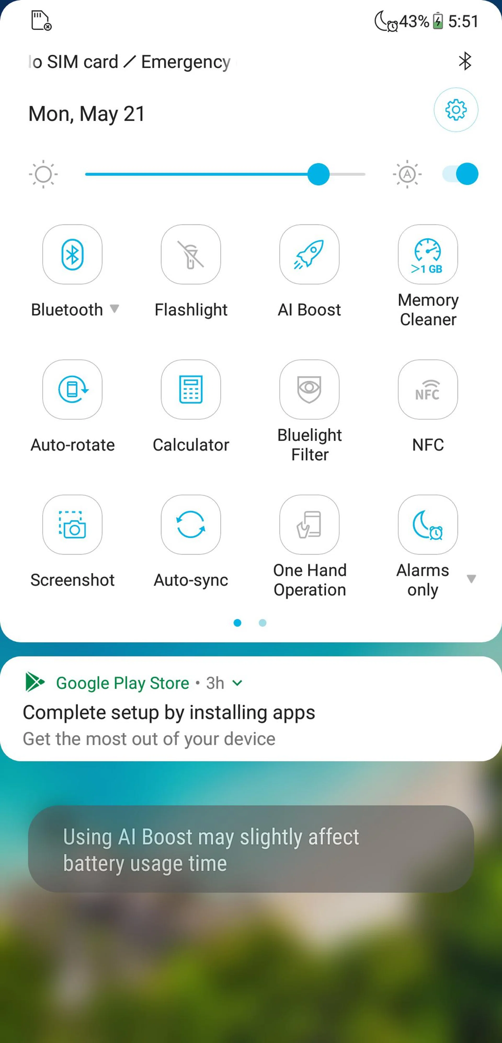 N.B. The ZenFone 5 has a feature called AI Boost. The phone will ask you if you want to turn it on anytime you start a game or benchmark, as well as a few other compute-intensive apps. You can toggle it on/off yourself from the Quick Settings menu by tapping the rocket ship icon. When turned on, you'll be warned that "AI Boost may slightly affect battery usage time."