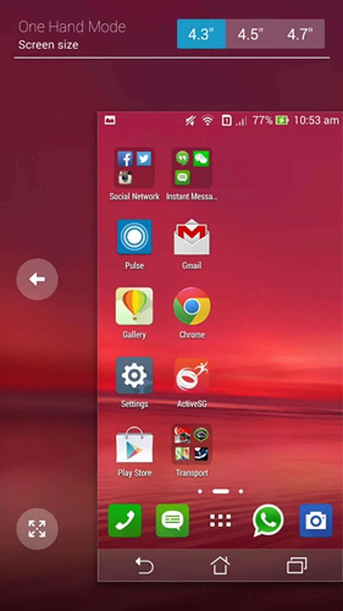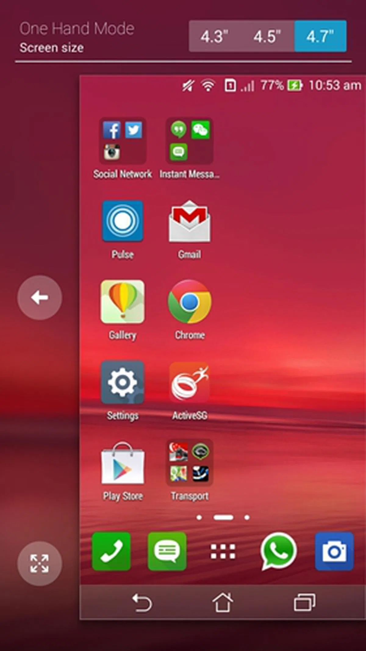 The feature was later enhanced on the Galaxy Note 3 where you can adjust the scale and position of the home screen panel. LG also has a similar feature, Mini View for its 5.9-inch G Pro 2. Mini View gives you the flexibility to adjust the screen from any sizes between 3.7 to 4.7-inches and position it anywhere. ASUS's take is not any different either.