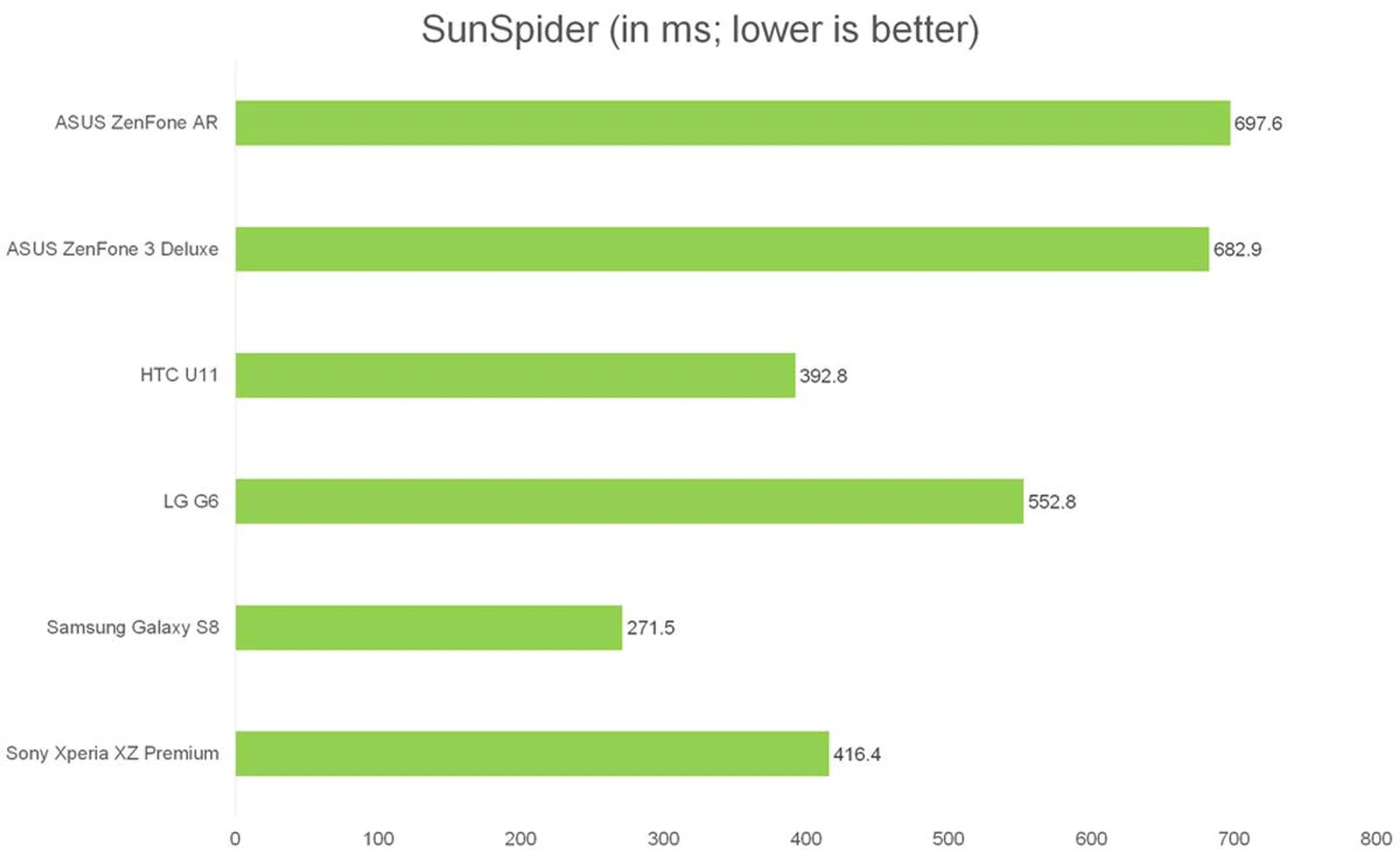 SunSpider JavaScript measures the browsing performance of a device when processing JavaScript. It not only takes into consideration the underlying hardware performance, but also assesses how optimized a particular platform is at delivering a high-speed web browsing experience. The ZenFone AR was certainly fast at loading news sites and e-commerce sites we’d usually visit.