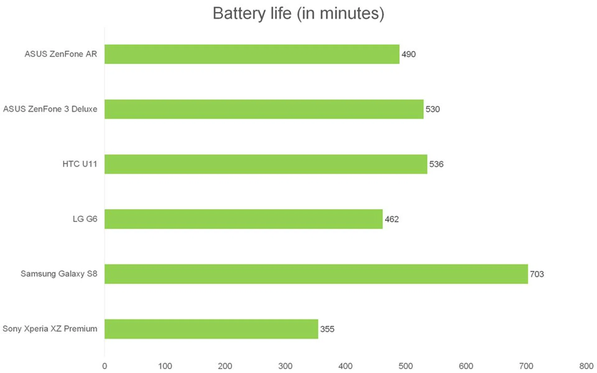 The ASUS ZenFone AR has 3,300mAh with Qualcomm Quick Charge 3.0. ASUS said that their Snapdragon 821 was specially tweaked to work well with AR and VR, and that would certainly explain the drastic drop in battery life when compared to the 3,000Mah ASUS ZenFone 3 Deluxe. The performance is also on par with the 3,300mAh LG G6, so the findings here are acceptable, even if it’s not the best in its price tier.