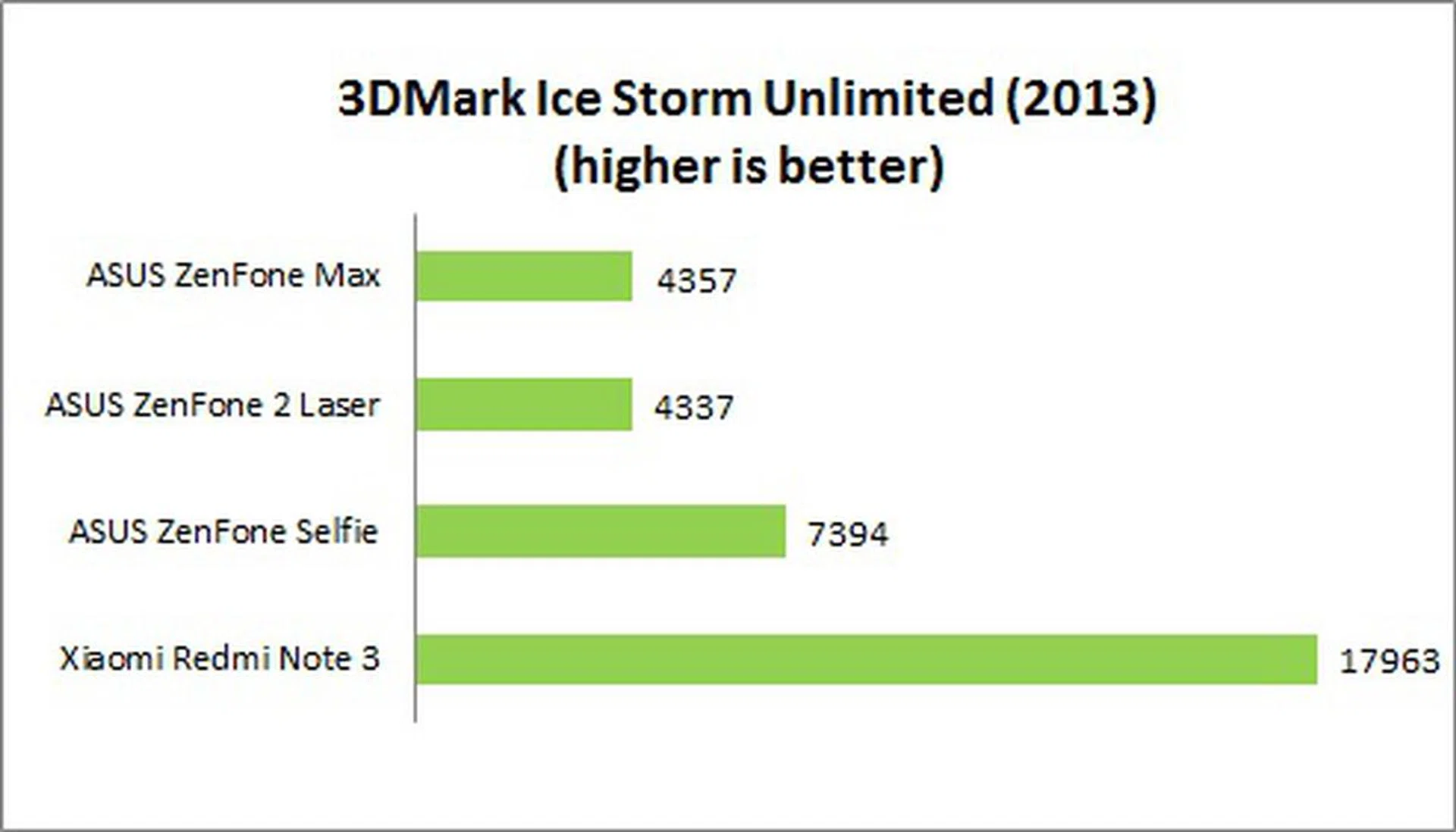 3DMark Ice Storm is designed to test the gaming capabilities of a device, putting its GPU through a rigorous OpenGL ES 2.0 benchmark test that uses fixed off-screen rendering with high quality textures and post-processing effects. The Unlimited version of the benchmark disables v-sync, display scaling and other OS factors, making it ideal for chipset comparison.Since all the recent flagship smartphones max out the scores for the Standard and Extreme tests, we will only be comparing results for Ice Storm Unlimited. Having said that, the ZenFone Max clearly lags behind the Redmi Note 3 and ZenFone Selfie where both of these devices don't cost much more than the ZenFone Max, but are better equipped.