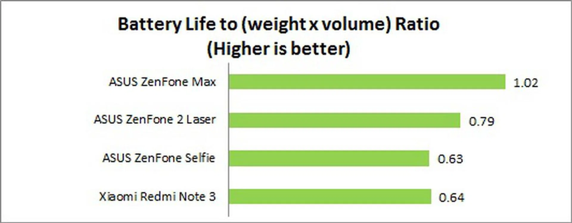 We measure the portability of a device by calculating its battery life to (weight x volume) ratio. Although the ZenFone Max is the heaviest among the phones compared, its superior battery mileage placed in a very favorable position in the Portability Index.