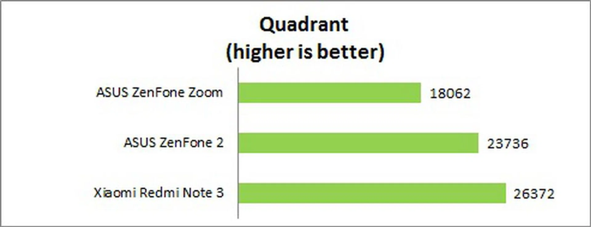Quadrant evaluates a device's CPU, memory, I/O, and 3D graphics performance. The Atom Z3590 processor seems to lag behind the Atom Z3580 counterpart in the ZenFone 2 despite having the same amount of RAM. This makes absolutely no sense as the Intel Atom Z3590 was launched later than the Atom Z3580 and has a speedier core and GPU. ASUS might not have done a good implementation of this new processor.
