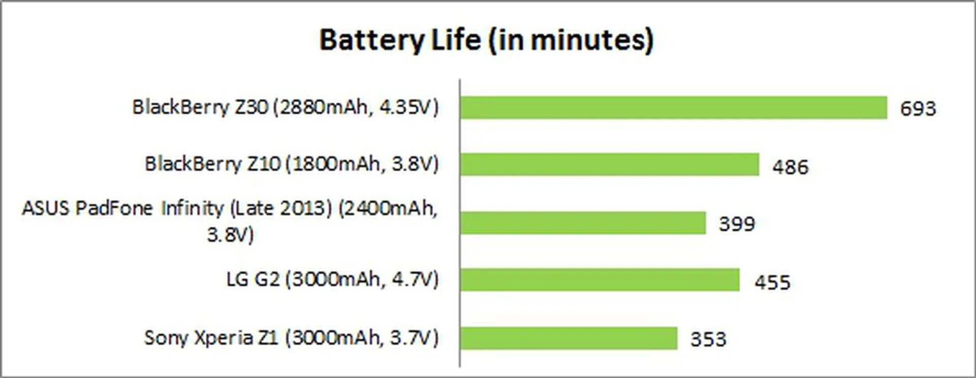 In the Portability Index where each device is assessed on its ability to balance battery mileage with its size and weight, the Z30 topped the comparison when pitted against its rivals. Only the Z10 was better, but it's a smaller device to begin with.