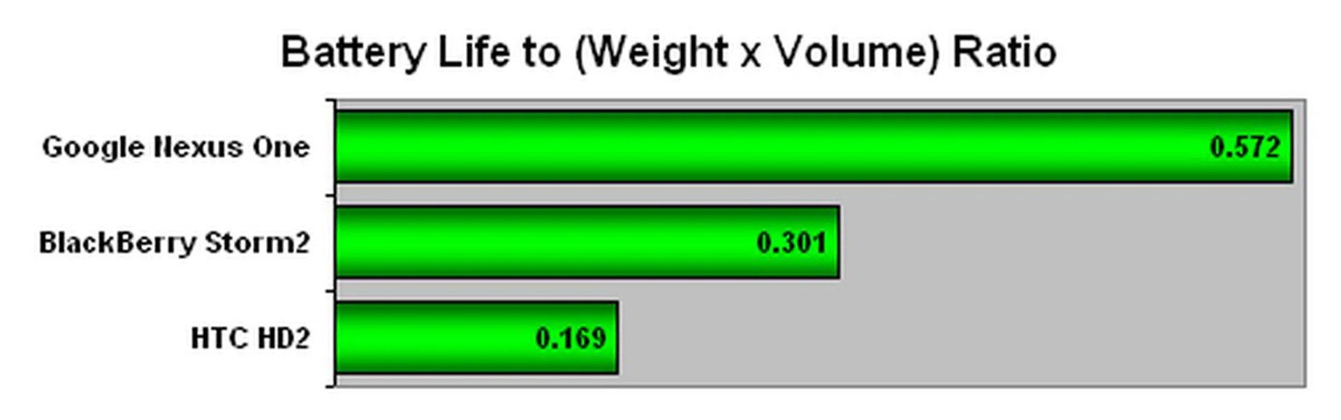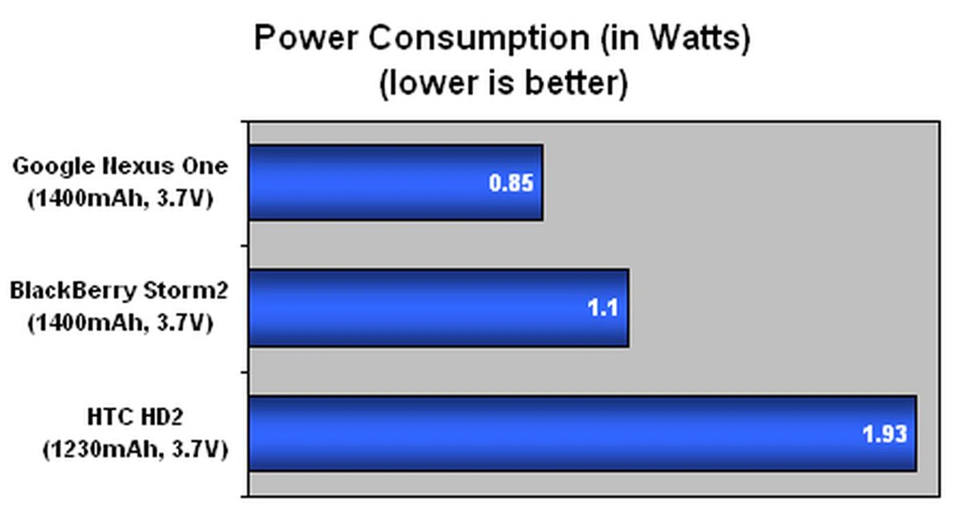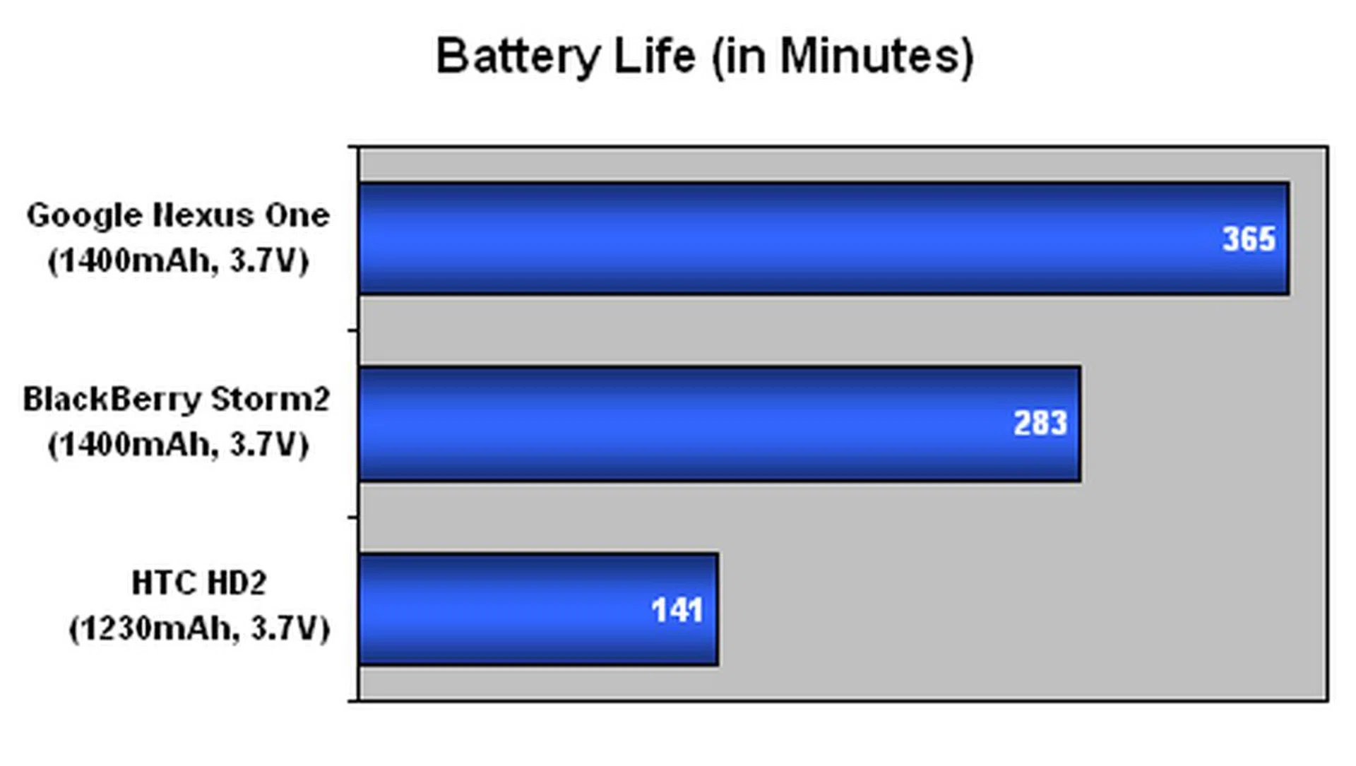 Remember, we are also dealing with data being constantly pushed to the Nexus One via your Gmail, so you will have an active Wi-Fi connection being utilized. Looking at two other similar models, the results are as follow: