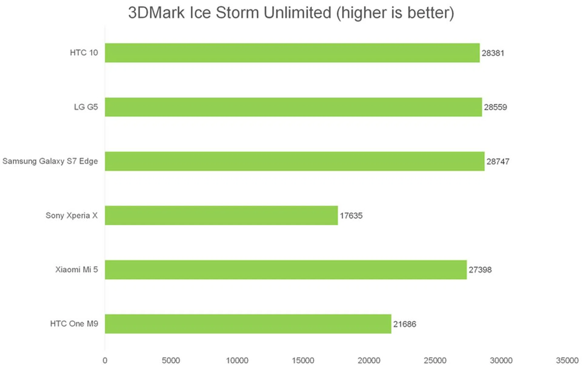 3DMark’s Ice Storm Unlimited test uses a mix of graphics and physics tests to measure hardware performance. The first test measures the GPU’s ability to process lots of vertices, while the second does the same thing with lots of pixels and post-processing effects. Finally, the physics test switches the load to the CPU to test its ability to process physics simulations, while keeping GPU load low. With the HTC 10 sitting together with the top scorers of this benchmark, it’s clear to us that the phone performs respectably for its asking price.