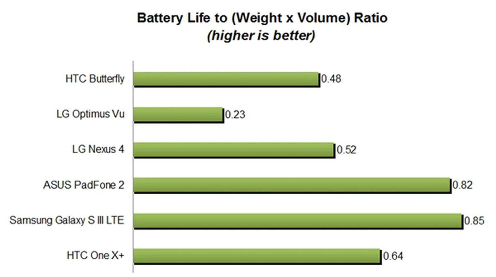 Armed with a Full-HD display and quad-core processor, we were worried that the Butterfly could not fare too well in our standard battery test. After all, HTC phones are known for their higher-than-average power consumption and shorter battery mileages.The results of the battery test proved that our worries were unfounded.