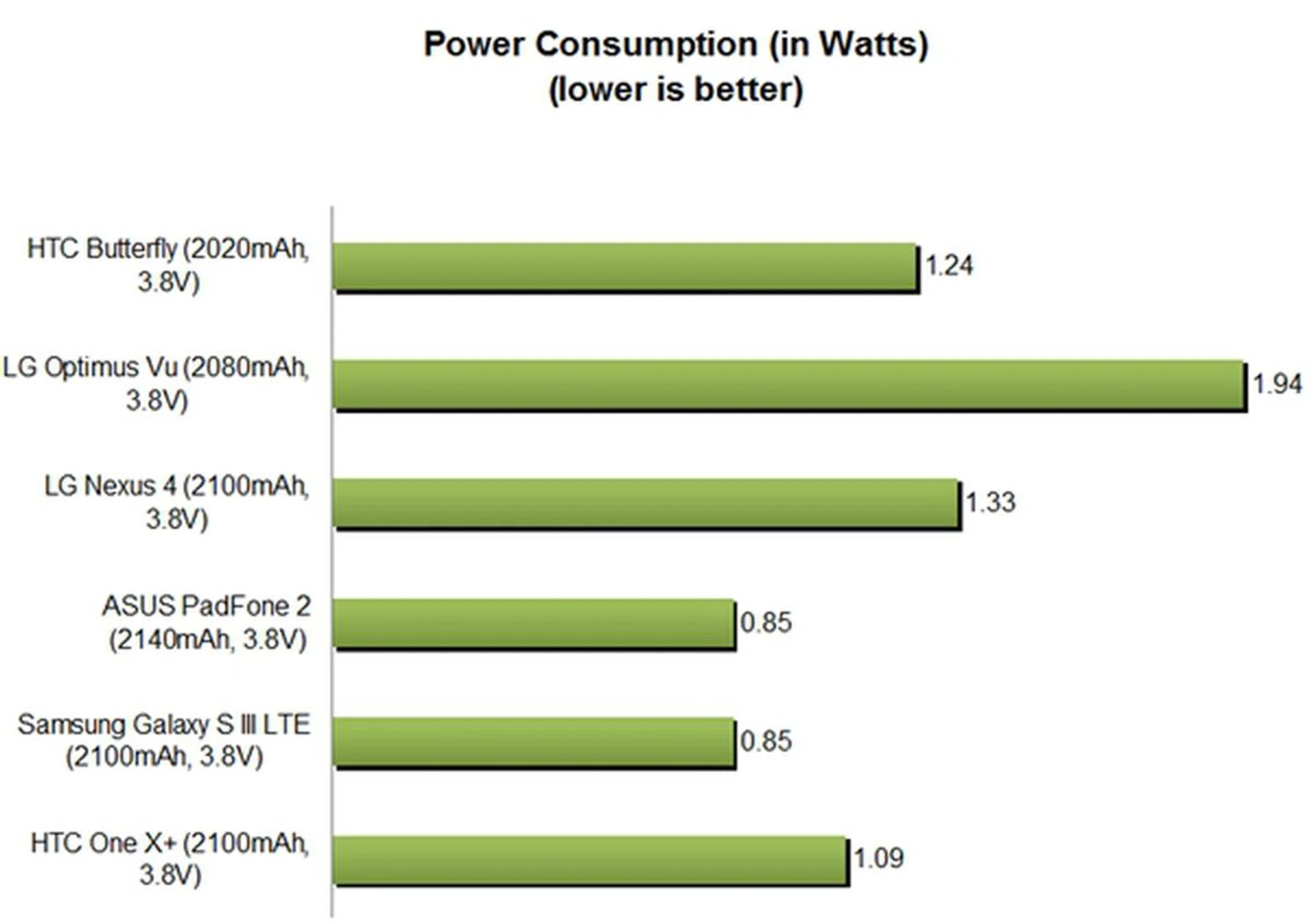 It is natural that a larger, higher resolution display will only draw more power and we cannot fault the Butterfly for having the second highest power consumption among the competition. We will only know if HTC has made significant improvements in the power management of its devices when we review the other 5-inch devices with full HD resolution based screens that are going to be launched in the coming months. Based on the current circumstances, we can see that HTC did a better job in this aspect than LG.