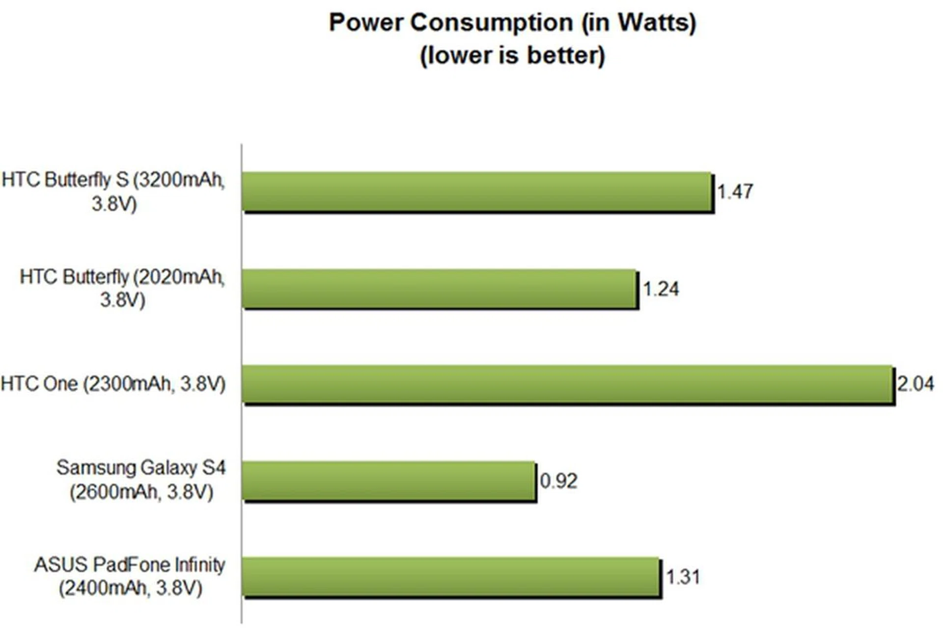 You must be wondering why the Butterfly S could not match up to the mileage clocked by the Samsung Galaxy S4, which has a smaller battery capacity yet could last two hours longer. Based on the Power Consumption chart, the Butterfly S has the second highest power consumption at 1.47W compared to the Galaxy S4 that's just at 0.92W. The higher power consumption of the Butterfly S could also be due to BlinkFeed running in the background and the different screen type used.
