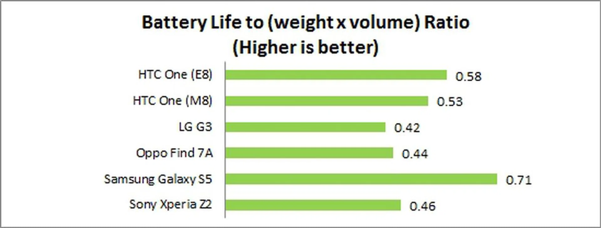 In fact, only the portability ratio had a positive impact on the One (E8) because it's lighter than the aluminum One (M8).