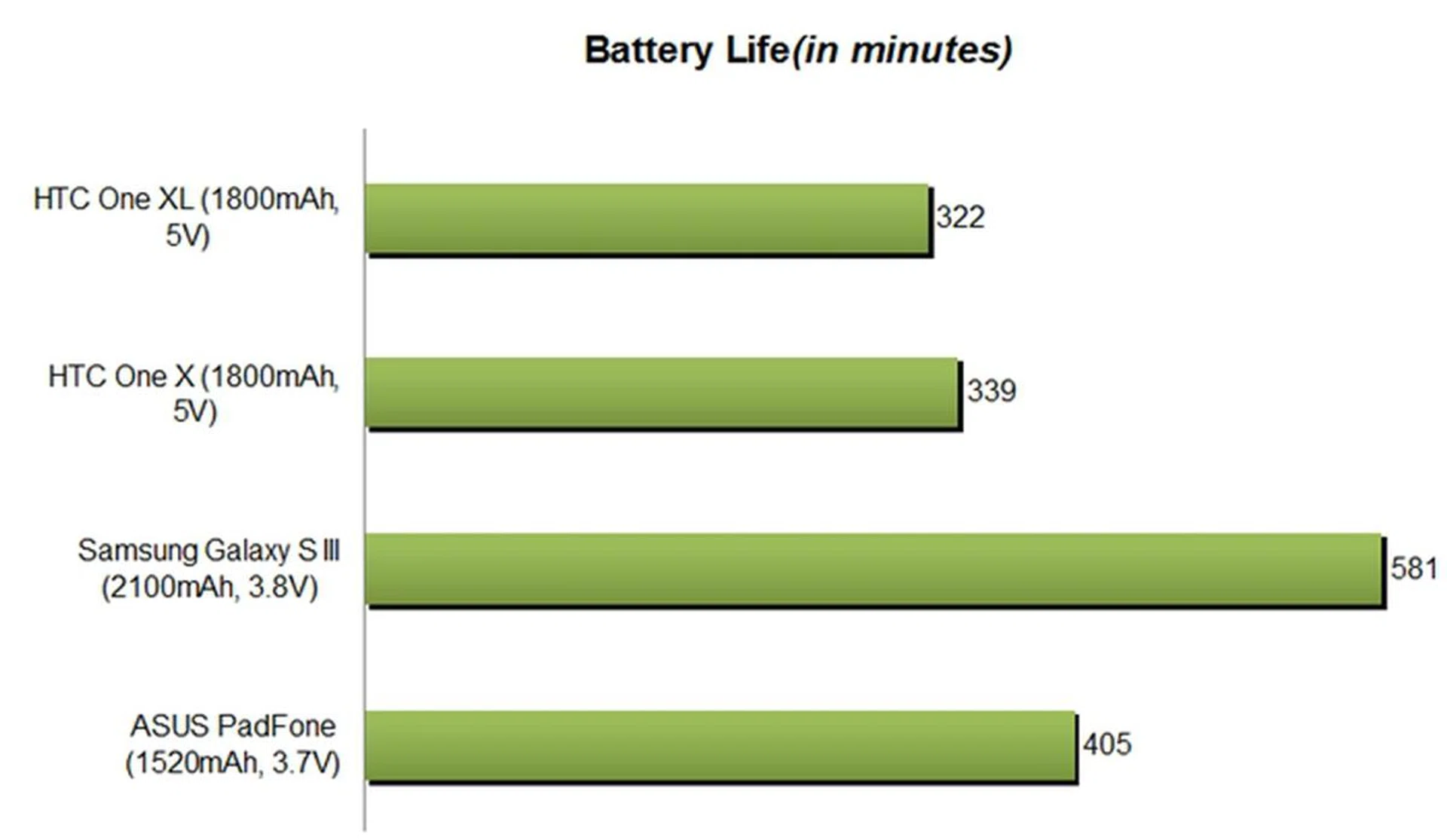 Even though the S4 processor should theoretically deliver better power efficiency, the HTC One X only managed to last about five hours and 22 minutes. We conducted the battery test twice to verify our findings, and the results were somewhat similar on both occasions. This battery mileage is also a far cry from that of the ASUS PadFone, which came in at an impressive 6 hours and 45 minutes despite having a smaller battery capacity. However, one cannot discount the fact that the PadFone has a smaller 4.3-inch Super AMOLED display which is known for its power efficiency.