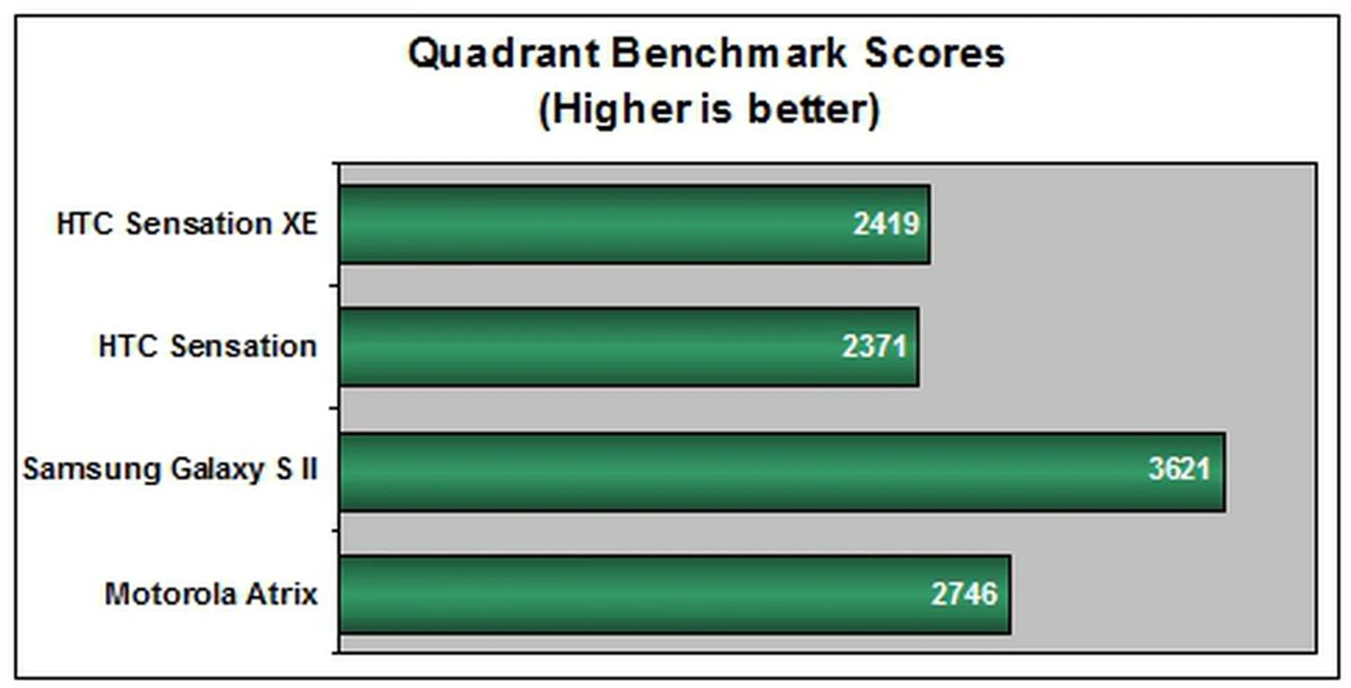 Device | HTCSensationXE | HTCSensation | Samsung Galaxy S II | Motorola Atrix |