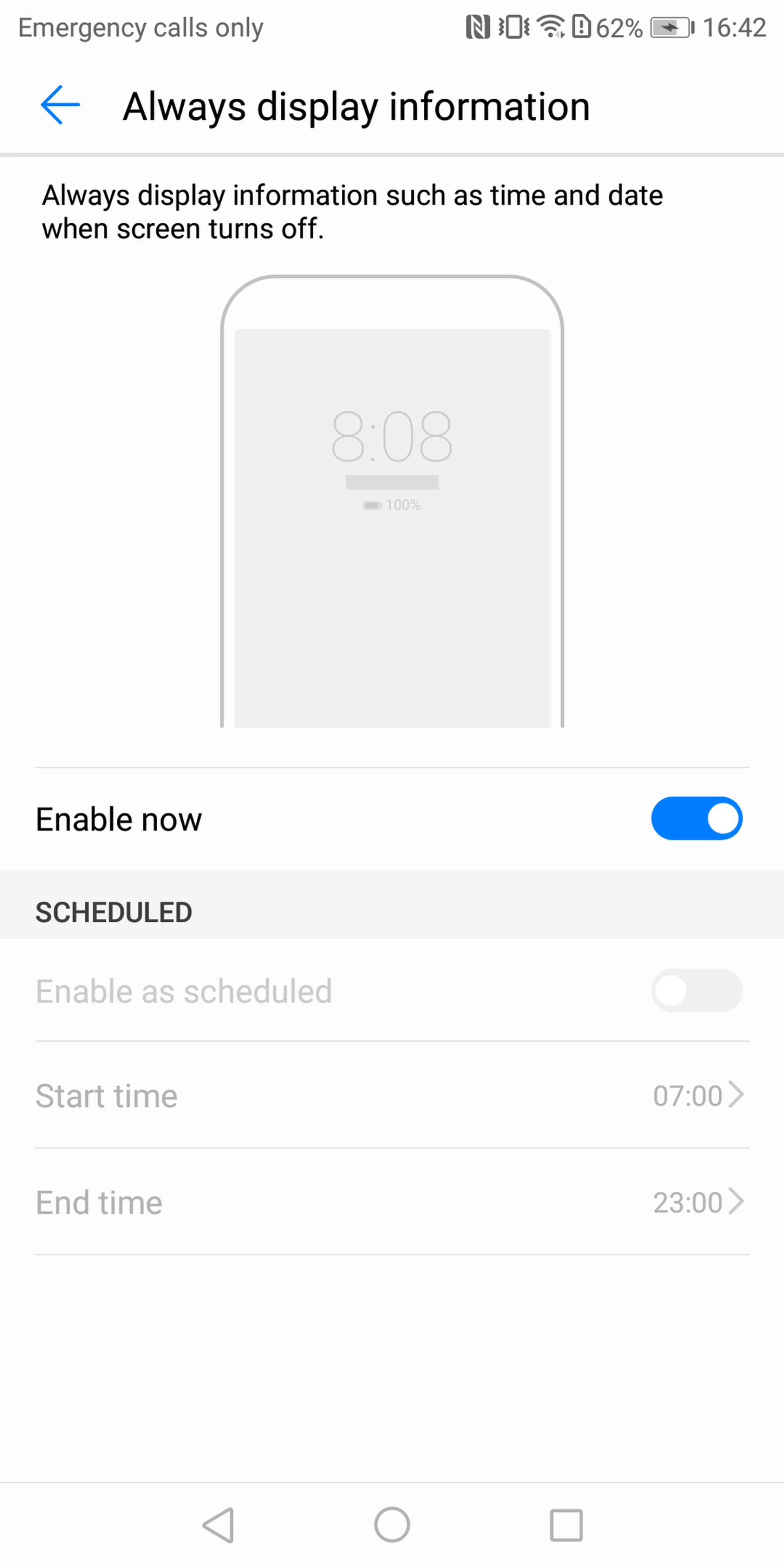 The display also offers an always-on mode, although strangely it's off by default, and turning it on requires you to go deep into the settings menu. To enable it, go to Settings > Security & Privacy > Screen Lock & Passwords > Always Display Information. Once turned on, it looks and operates similar to Samsung's always on display, showing the time, date, battery percentage and what music is playing, as well as app notifications — although these notifications only seem to work with Huawei's own apps.