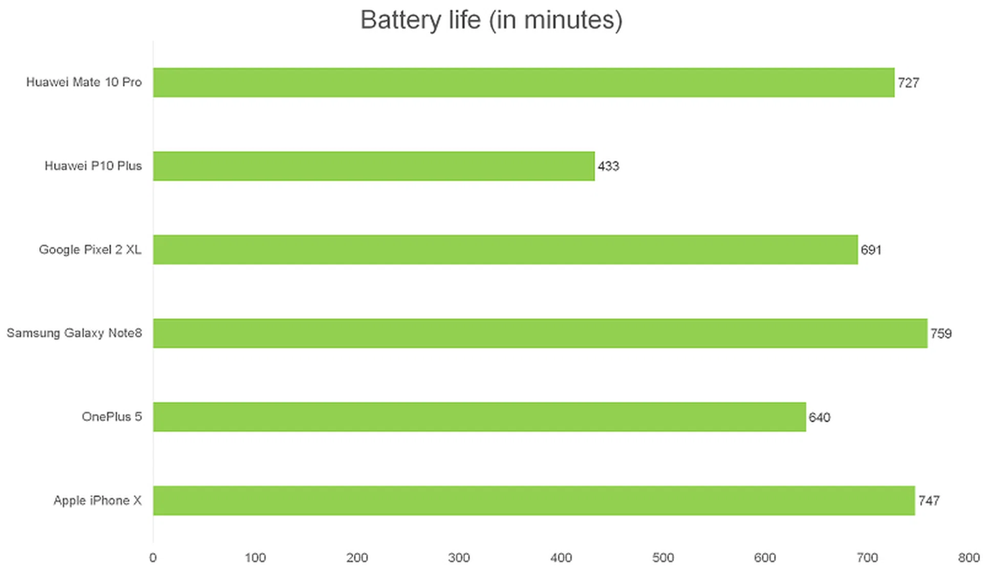 In our video looping battery benchmark, we saw the effects of the new OLED display, as the Mate 10 Pro lasted just over twelve hours, which puts it on par with the iPhone X and Samsung Galaxy Note8.