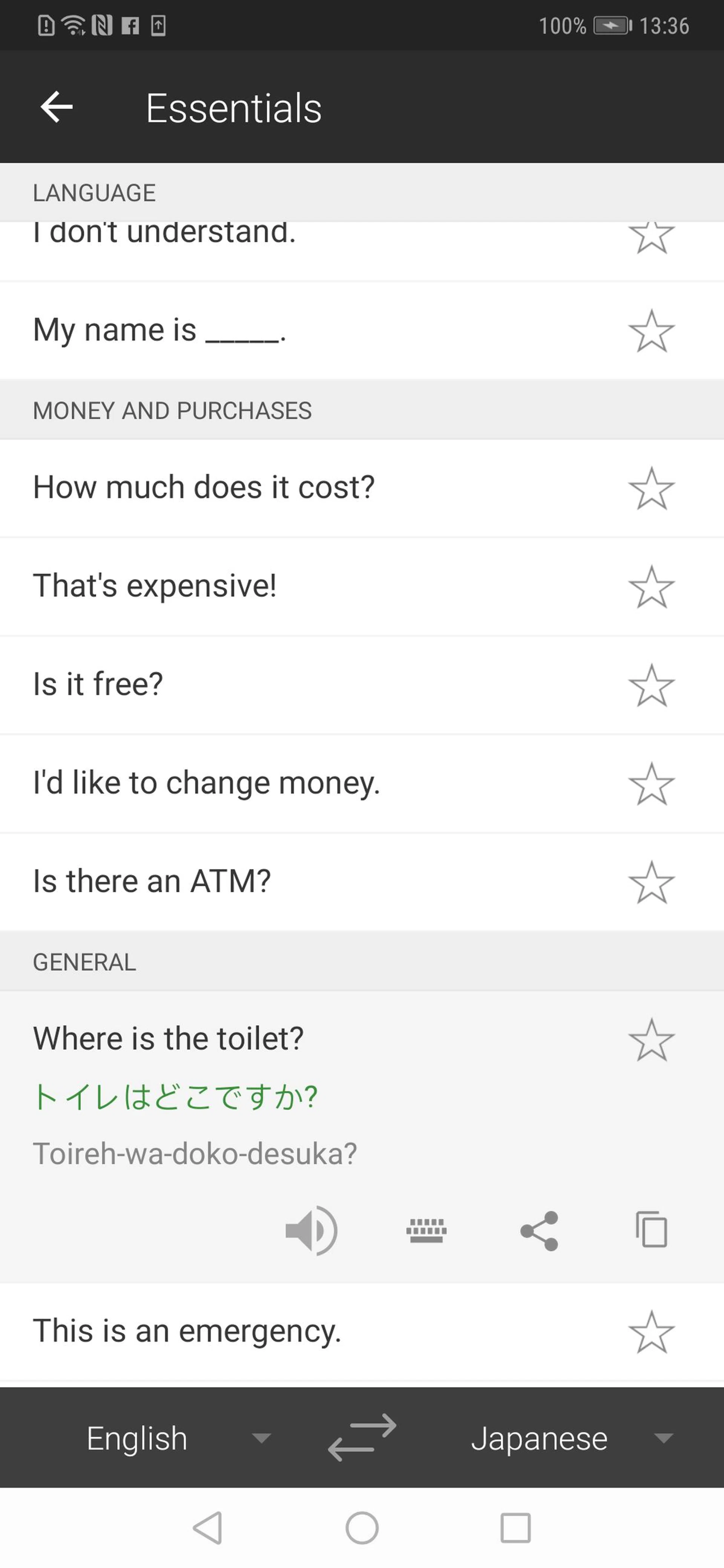 Huawei also includes a dozen or so of its own pre-installed apps, which range from simple tools like a calculator, flashlight, and voice recorder, to its own Translator app, which is basically Huawei's version of Google's Translate app. Oddly enough, the welcome screen on Huawei's Translator app says that it's powered by Microsoft, so maybe it's just a re-skinned version of Cortana? One nice feature in Translator is a Phrasebook with a list of common phrases you can quickly select that you might need on holiday (such as "Where is the toilet?") for about fifty or so languages.