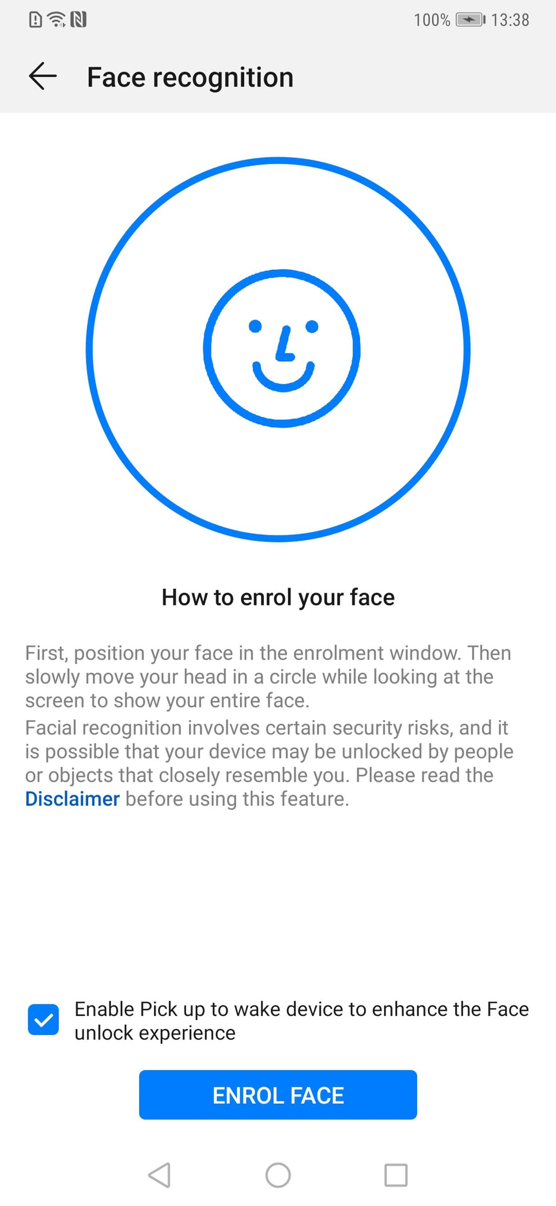 While previous Huawei phones have had face unlock, this is the first time it's the real deal, using an IR camera and an IR flood illuminator (housed in the notch) to project 30,000 infrared dots onto your face, which scan your face in 3D for millimeter-level accuracy. This is exactly the same setup Apple uses for FaceID, and the two systems are functionally identical. They're both accurate, they both unlock instantly, they both can't be fooled by a picture of you, and they both work in the dark. You even enroll your face the same way (by rolling your head around in a circle).