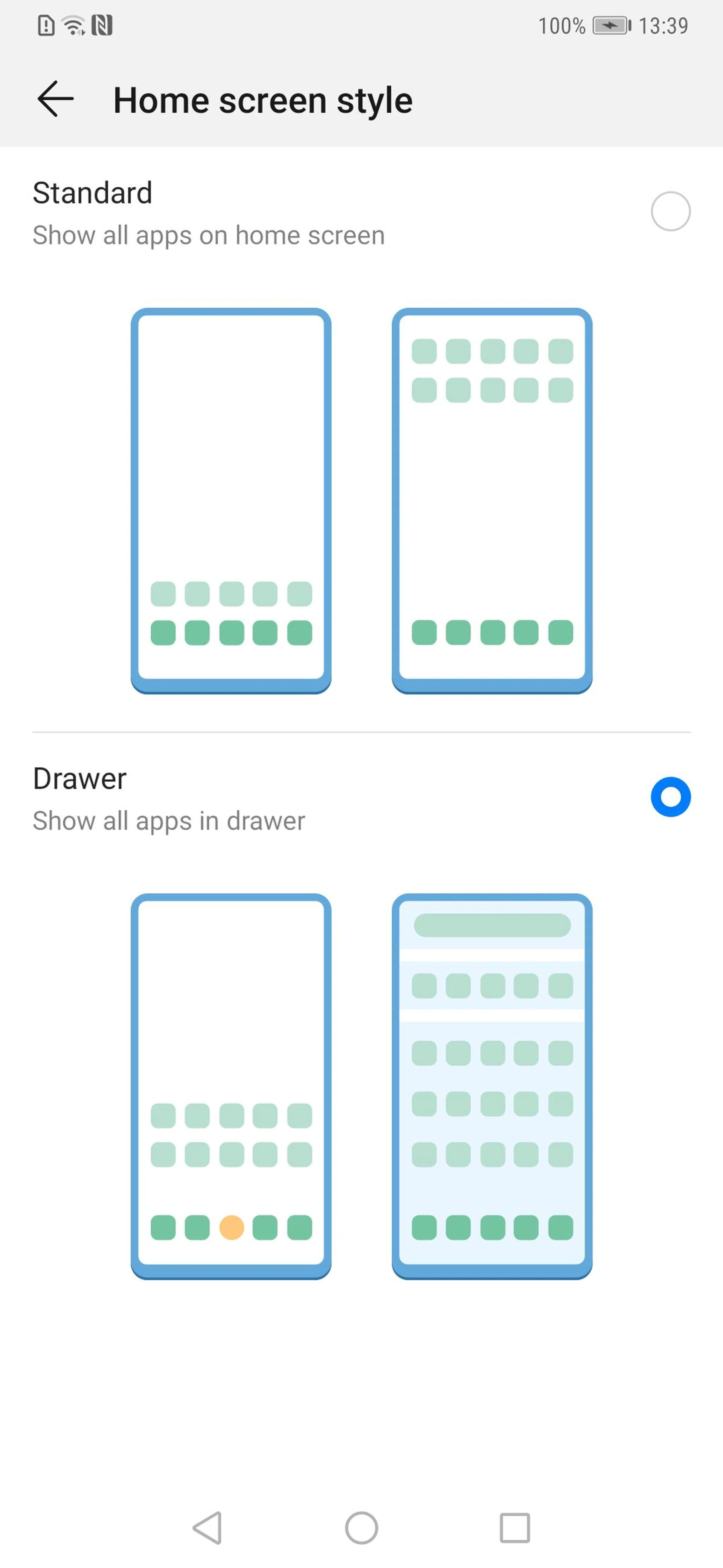 As usual, the default home screen removes the app drawer, with all of your apps on the home screen, iOS-style. However, you can easily restore the app drawer in the 'Home screen style' settings menu.