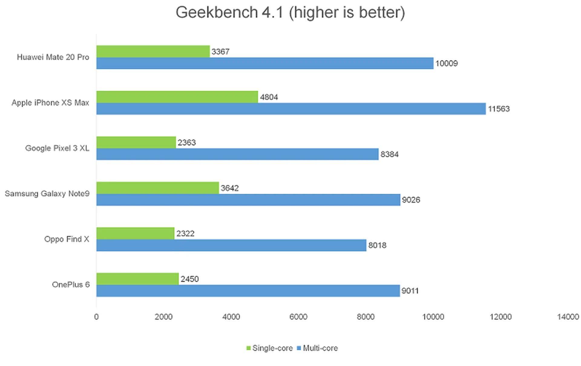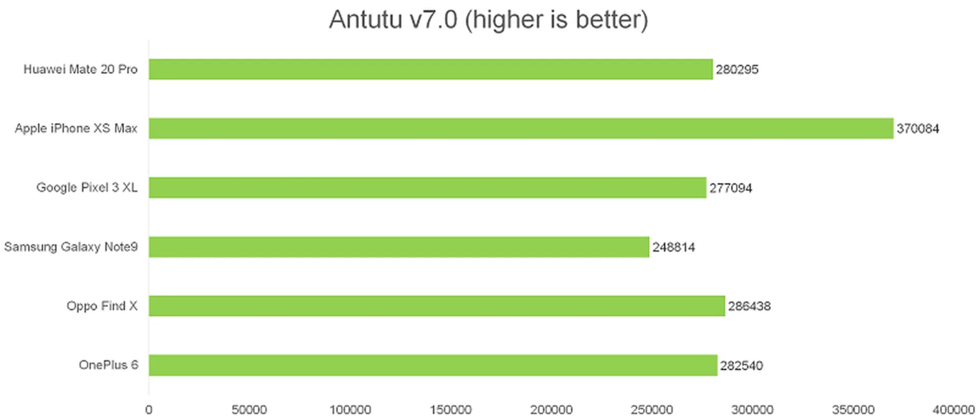 The Mate 20 Pro was much better than the Snapdragon 845-powered phones on this benchmark. Compared to the Note9, the Kirin 980 is slightly worse in single-core performance, but slightly better in multi-core performance. Apple's A12 Bionic is once again way out in front.