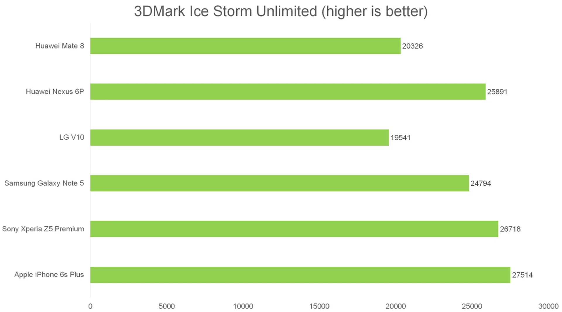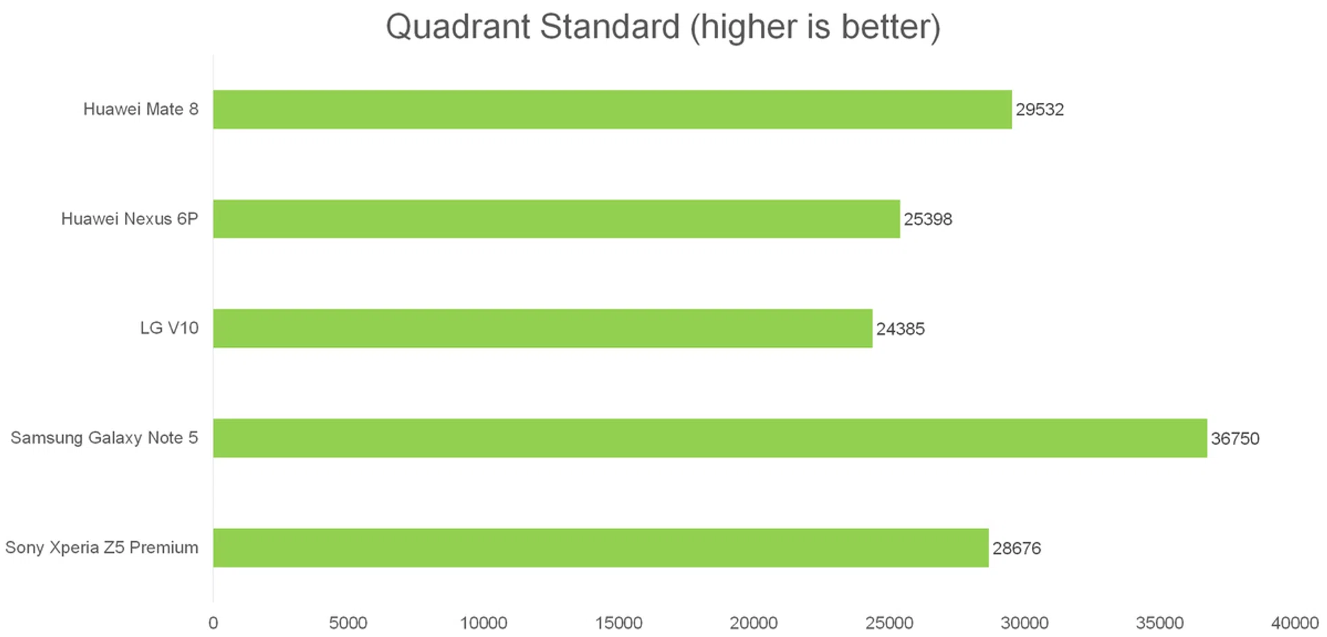 Quadrant is an Android benchmark that evaluates a device's CPU, memory, I/O and 3D graphics performances. As this is an Android benchmark, the Apple iPhone 6s Plus is not included here. The Mate 8 did really well here, outperforming all of our Snapdragon-equipped phones, and lagging behind only Samsung's Exynos 7420. It's worth remembering though that the 810 is a year old now, and it remains to be seen how the new Snapdragon 820, which is what the Mate 8 will be competing with, fares.