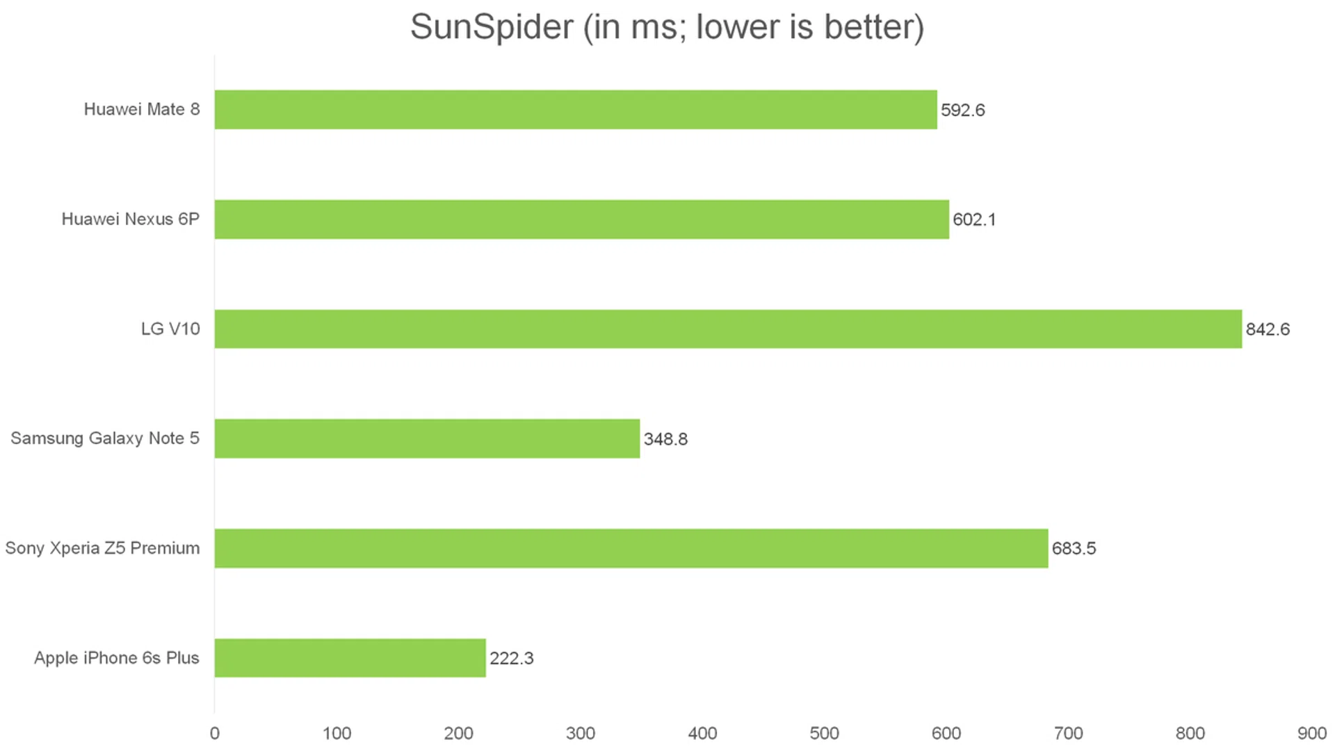 SunSpider JavaScript measures the browsing performance of a device when processing JavaScript. It not only takes into consideration the underlying hardware performance, but also assesses how optimized a particular platform is at delivering a high-speed web browsing experience. The Mate 8 performed quite well here, with performance on par with the Qualcomm Snapdragon 810 found in the Nexus 6P.