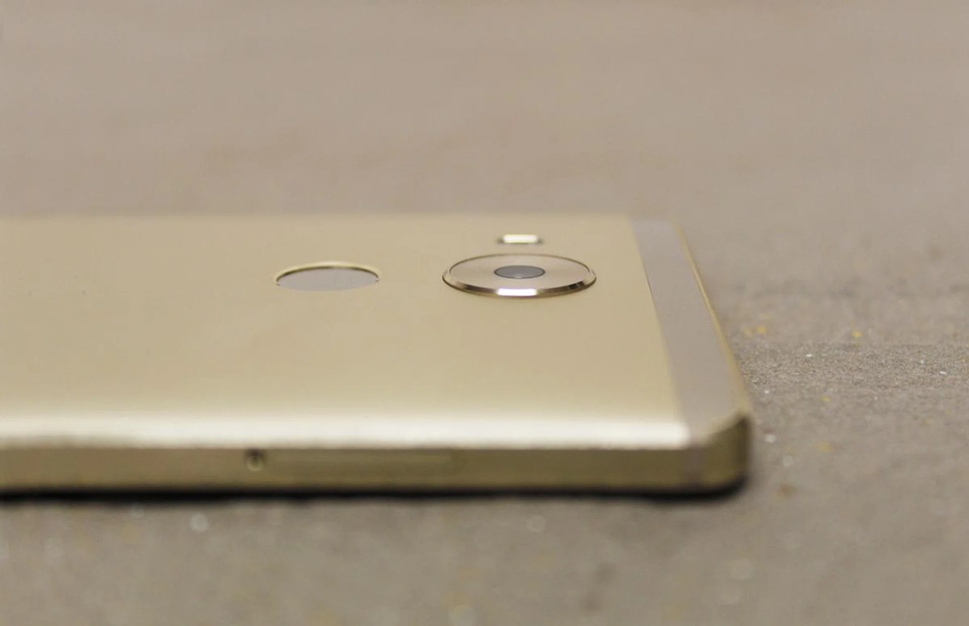 Above the fingerprint scanner there's a circular camera module with a ring of chamfered metal around it. The camera lens does protrude a little bit, but it's not too bad overall.