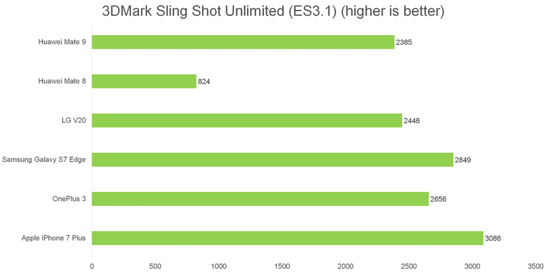 The Mate 9 once again lagged slightly behind both 820-equipped processors, and was considerably weaker than both the S7 Edge and iPhone 7 Plus. It did however live up to expectations somewhat as it was greatly better than its predecessor.
