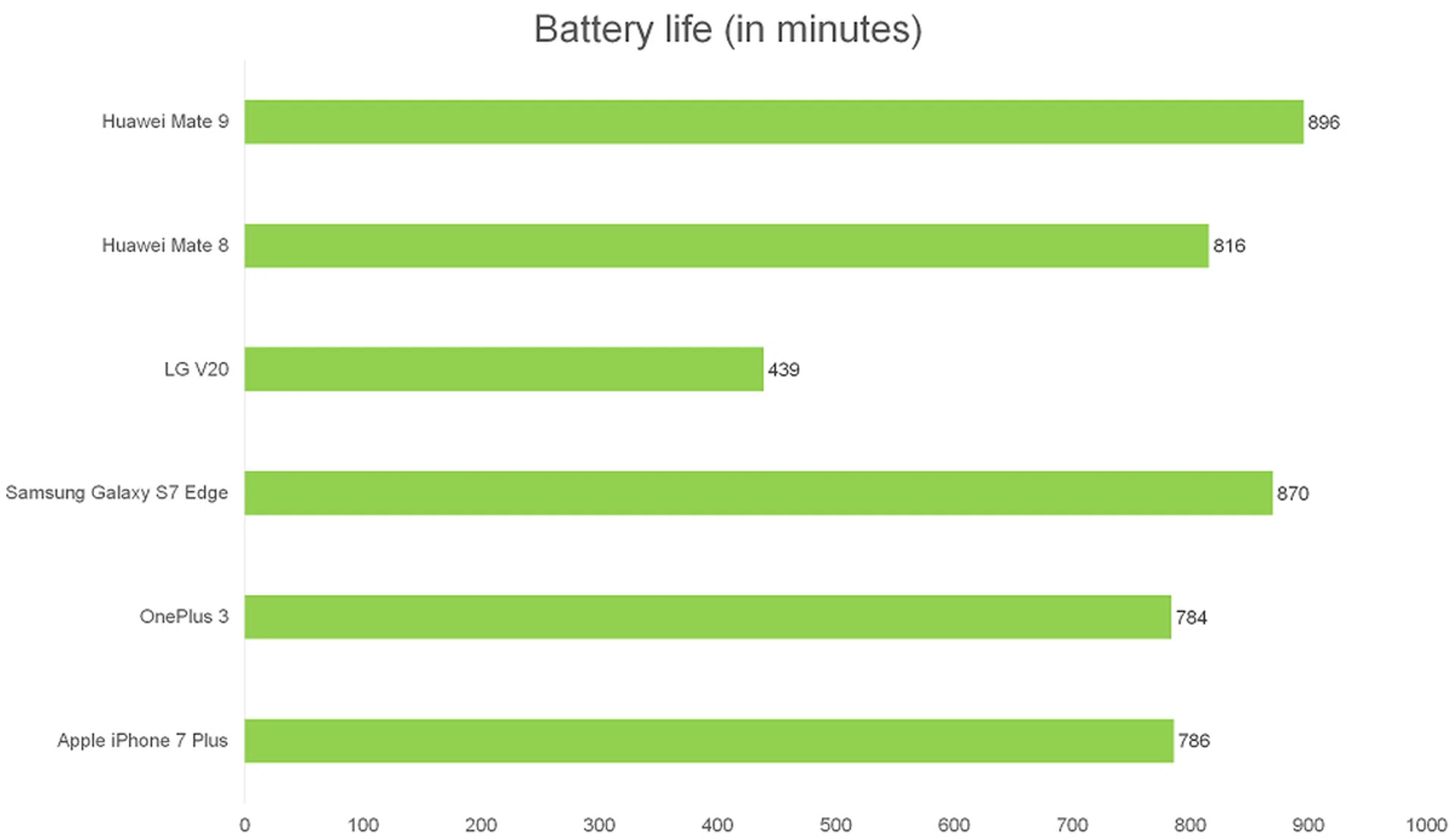 The Mate 9 has a massive 4,000mAh battery, giving it one of the highest capacity batteries out there. In combination with its Full HD display, this resulted in excellent battery life.