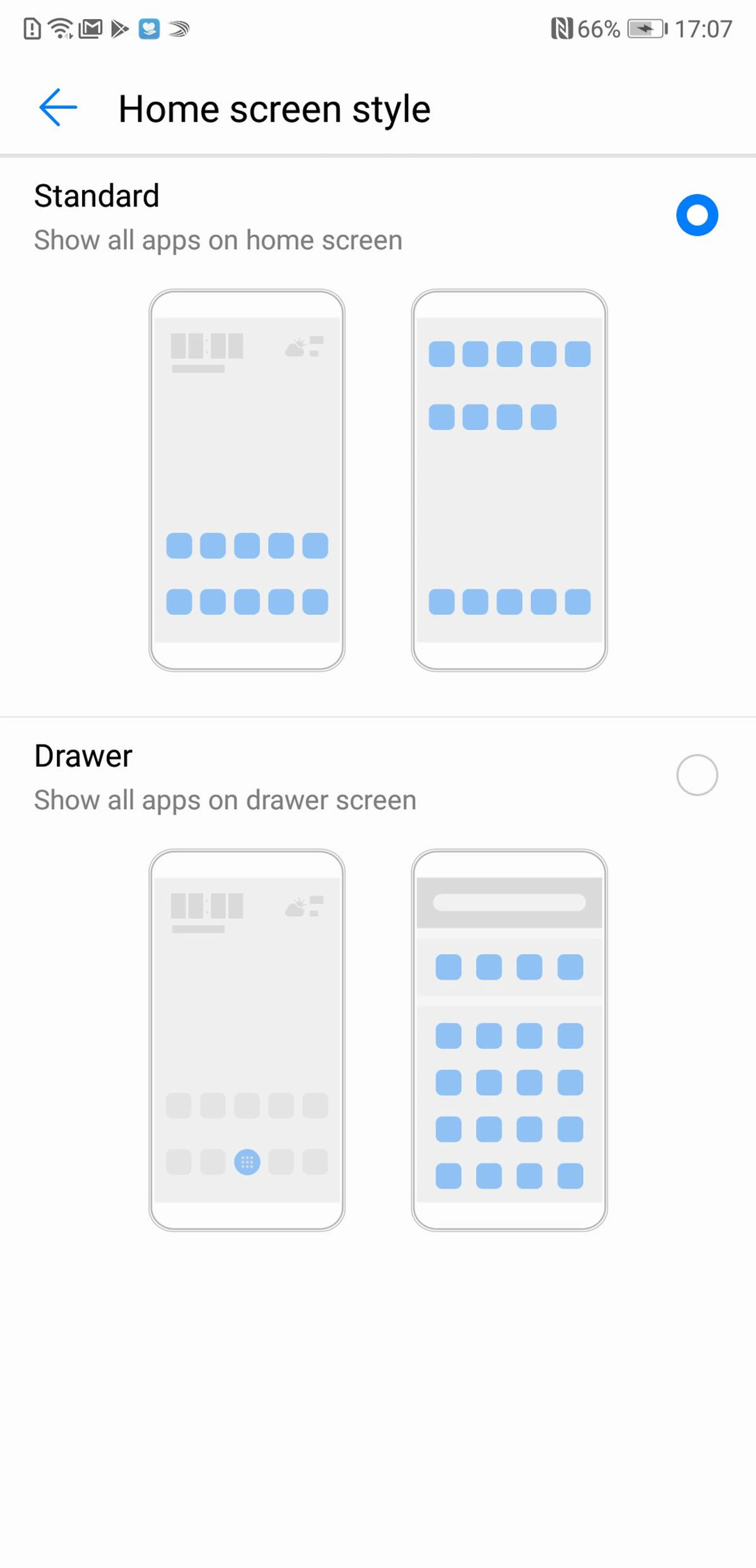 First, some of the more annoying changes. As usual, EMUI reskins the default Settings menu, which makes it a bit frustrating to find exactly what you're looking for. As with most Chinese UIs, it also removes the app drawer from the main menu, favoring instead an iOS-like layout of pages and pages of apps. Fortunately, you can restore the app drawer by going to Settings > Display > Home screen style, then selecting Drawer style.