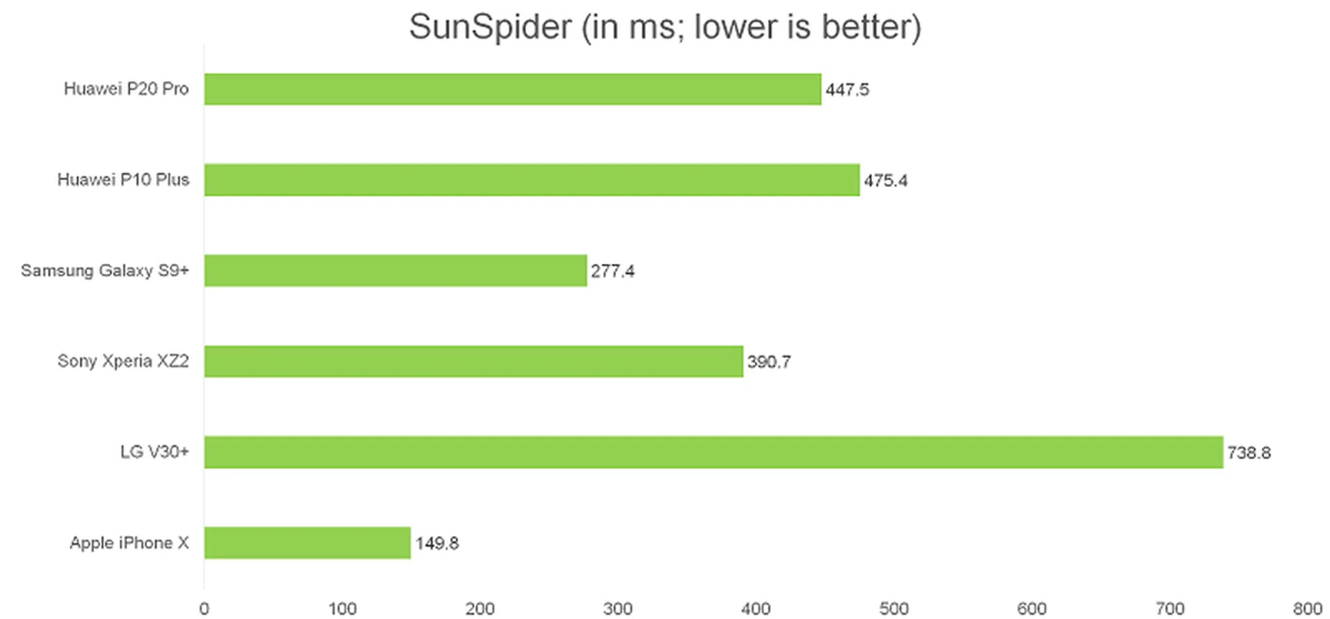 The P20 Pro was much better than the P10 Plus and the LG V30+, and was close in performance to Samsung's Exynos 9810-powered Galaxy S9, however it was easily bested by the Xperia XZ2 and iPhone X.