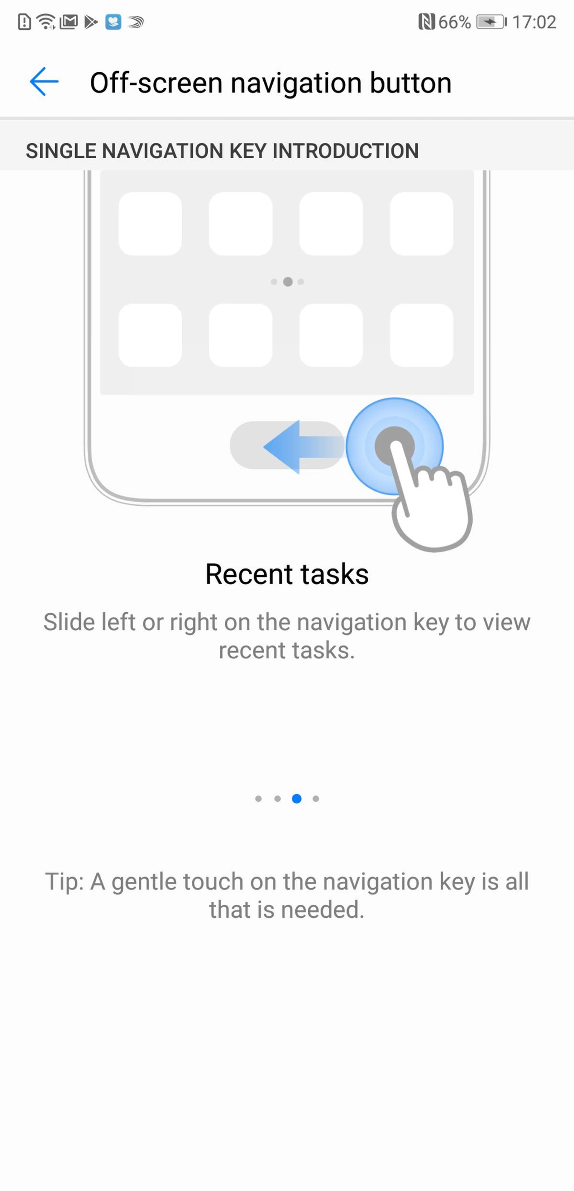Personally, I feel like it would be more intuitive to have swipe be the back button, and long press to view recent apps, but unfortunately there's no option to customize the navigation sensor. If you can't get used to it, there's also an option for on screen buttons in a variety of layouts like I have below: