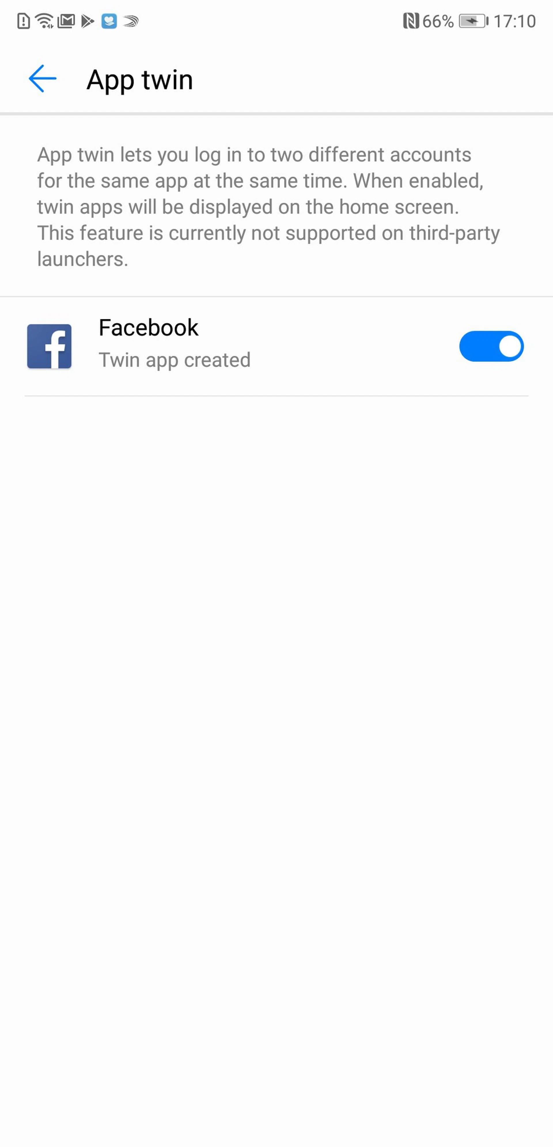 App Twin is an interesting feature that I really like. If you have multiple Twitter or Facebook accounts (I have one for personal use, and one for work) App Twin lets you create multiple instances of the same app on your phone. You can then stay signed in to a different account on each instance. App Twin, like many of the P20 Pro's best features, is hidden deep in the settings. To enable it, go to Settings > Apps & Notifications > App Twin. Only apps that are compatible with App Twin will be listed here.
