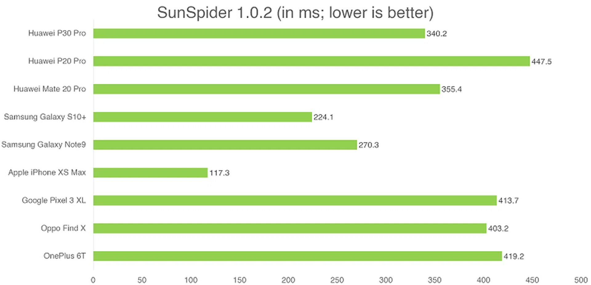 The P30 Pro performed well in this test and was actually faster than the Mate 20 Pro. Actual browser performance was fast and responsive. In fact, I didn't notice any difference between the P30 Pro and the iPhone XS Max.