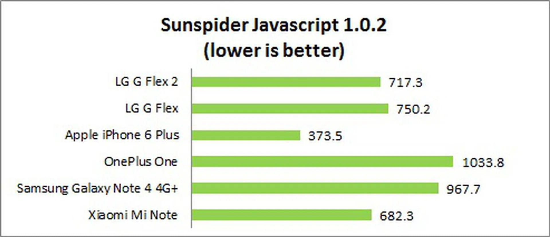 SunSpider JavaScript helps measure the browsing performance of a device when processing Javascript. It not only takes into consideration the underlying hardware performance, but also assesses how optimized a particular platform is at delivering a high-speed web browsing experience. Surprisingly, the G Flex did not perform as well as we've expected. While it is ahead of the OnePlus One and Samsung Galaxy Note 4 4G+, it lags slightly behind the Xiaomi Mi Note. It is likely that LG requires a little more work on software optimization, or that is due to the newer Android 5.0 (Lollipop) operating system.