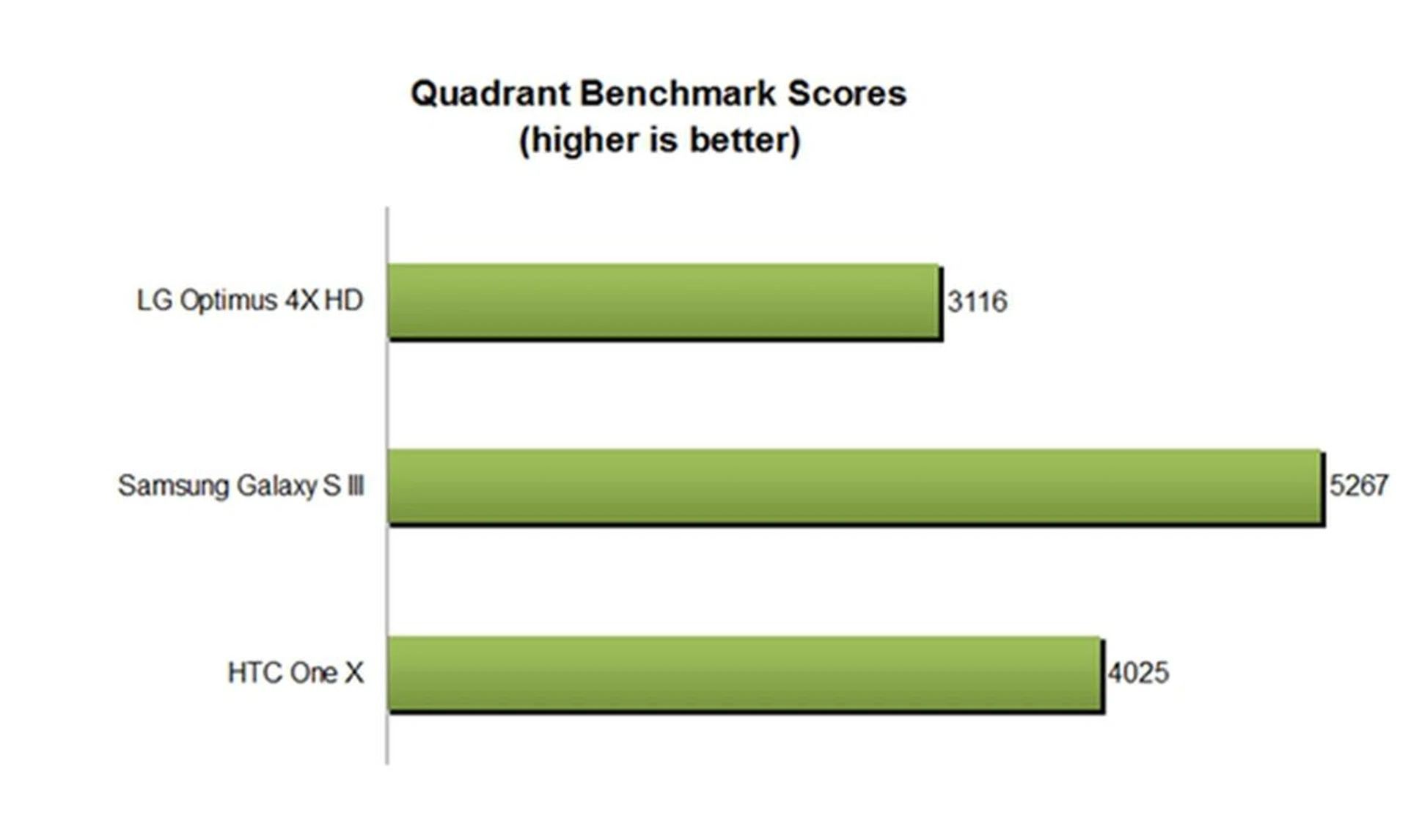We were impressed with HTC One X's Tegra 3 quad-core processor, which propelled it ahead of its competition by a huge margin when it first came out. Soon after, we were even more impressed with the Galaxy S III's Exynos 4 Quad quad-core processor when we tested the Galaxy S III with Quadrant and other benchmarking apps. The LG Optimus 4X HD comes with the same NVIDIA Tegra 3 quad-core processor and ULP GeForce GPU that are found on the HTC One X but it fared slightly worse than its competitor. We attribute the difference to better optimization on the HTC One X.